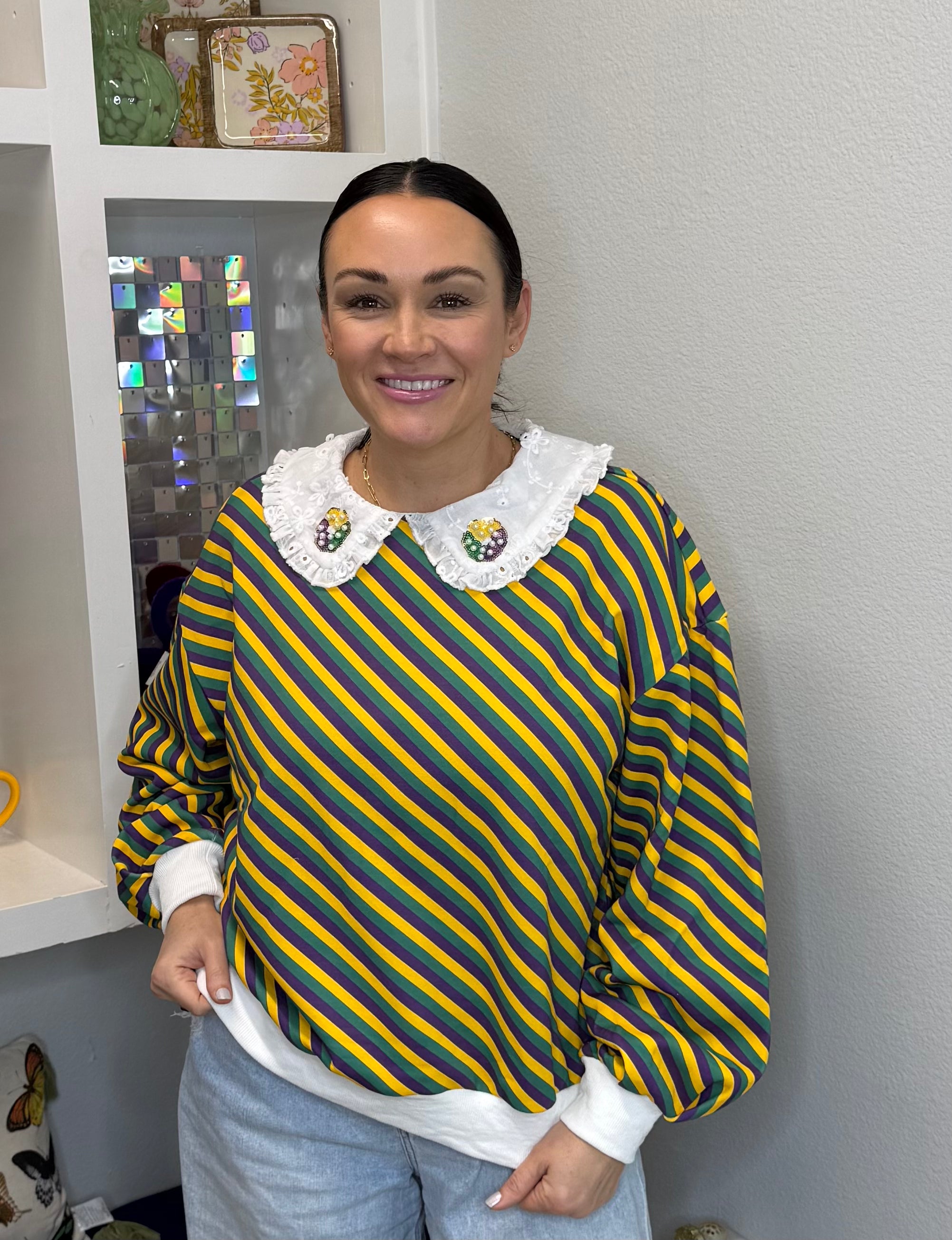 Mardi Gras Stripe & King Cake Collar Sweatshirt