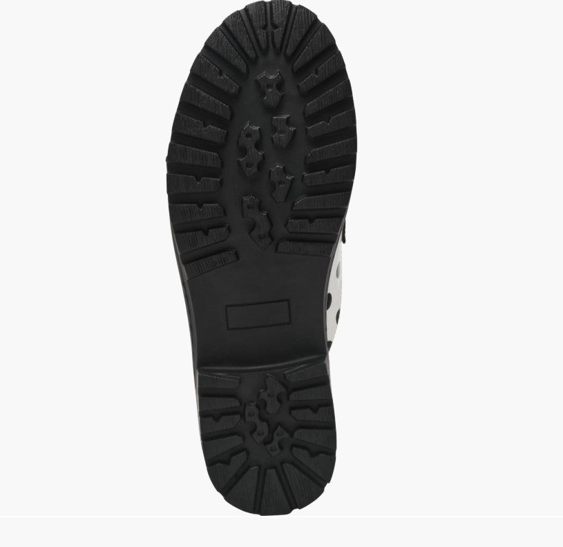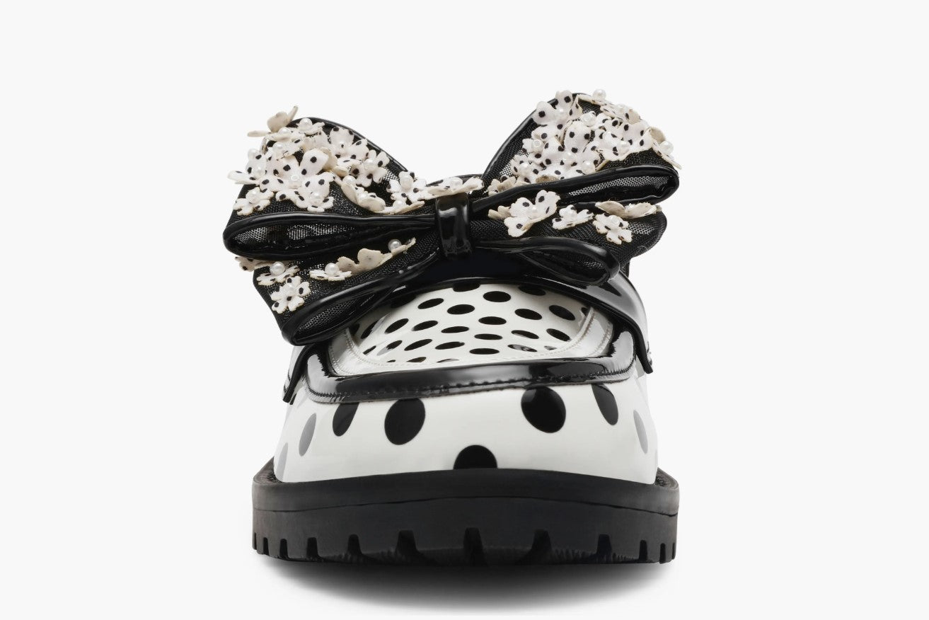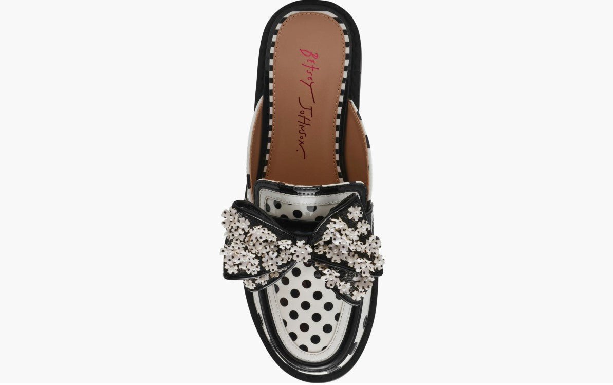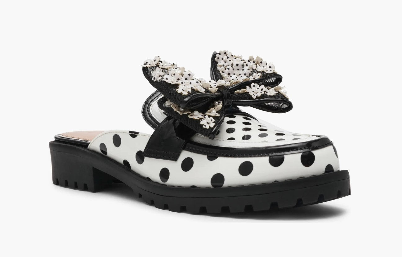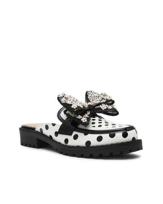Enjoy two distinct styles in one pair by slipping into the Evaline loafers from Betsey Johnson. This slip-on style features a tailored silhouette, complete with a cutaway lip and a sophisticated moc toe, while the lug sole adds an edgy flair. Complete with a bold polka dot upper and an elegant fabric bow that is embellished with tiny floral accents.
