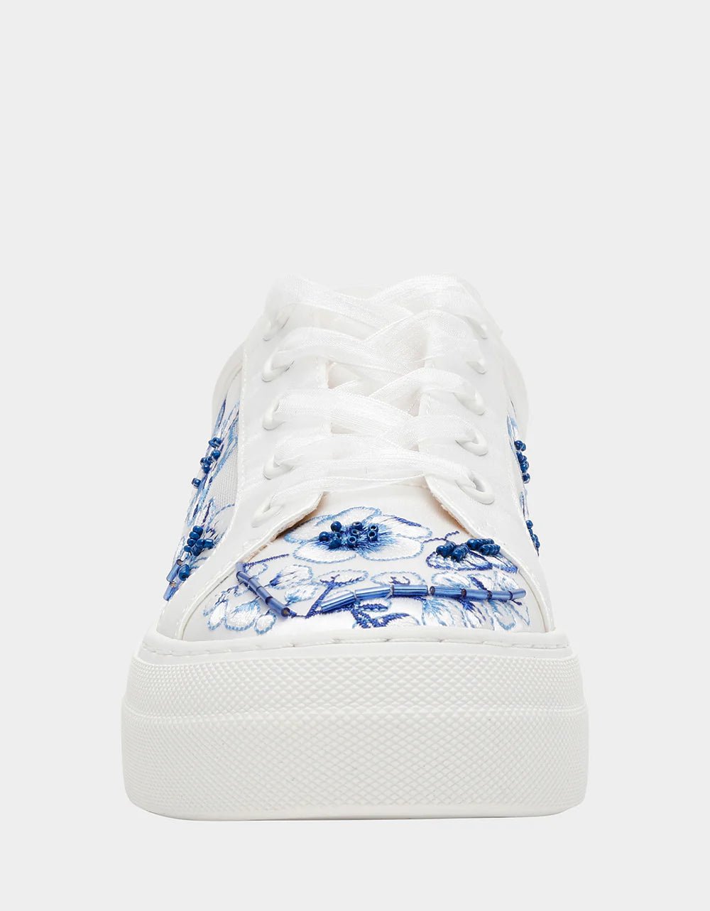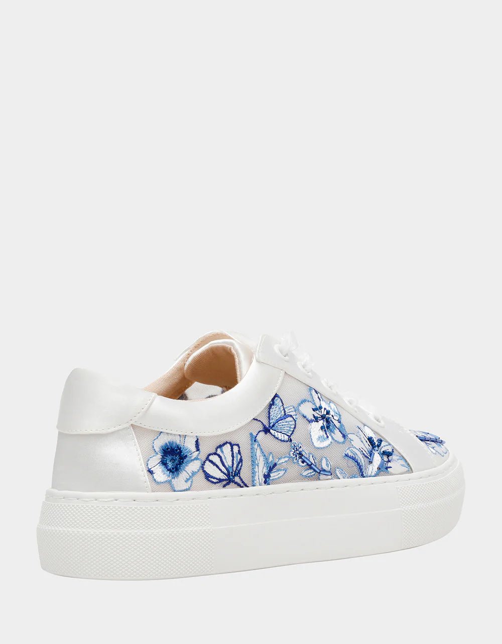 Betsey Johnson's NINO sneaker gives all the comfort of a sneaker with flair! The mesh side panels an satin toe are adorned with embroidery and hand-beading. The look is finished with tulle laces.
