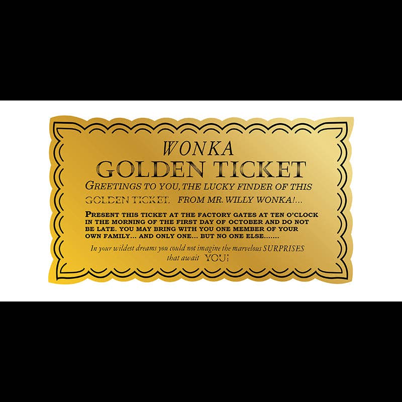 This delectable journal is designed to look like a wrapped Wonka Bar™ and is the perfect place to record all your candy-inspired adventures. CHOCOLATE-SCENTED SCRATCH & SNIFF COVER: Scratch the front cover of your Wonka Bar™ journal to release the sweet chocolate scent and be transported to Willy Wonka’s factory with its waterfalls and rivers of chocolate all around. 128-RULED PAGES: Lined pages provide plenty of space for all your writing and ideas for new candy creations. HANDY CANDY-BAR SIZE: The unique 3.5 x 7.5 inch long format of this journal is especially handy for making lists GOLDEN TICKET COLLECTIBLE: Open the journal to find a replica Golden Ticket to the Willy Wonka Chocolate Factory hidden inside—a treasured collectible for any Wonka fan.