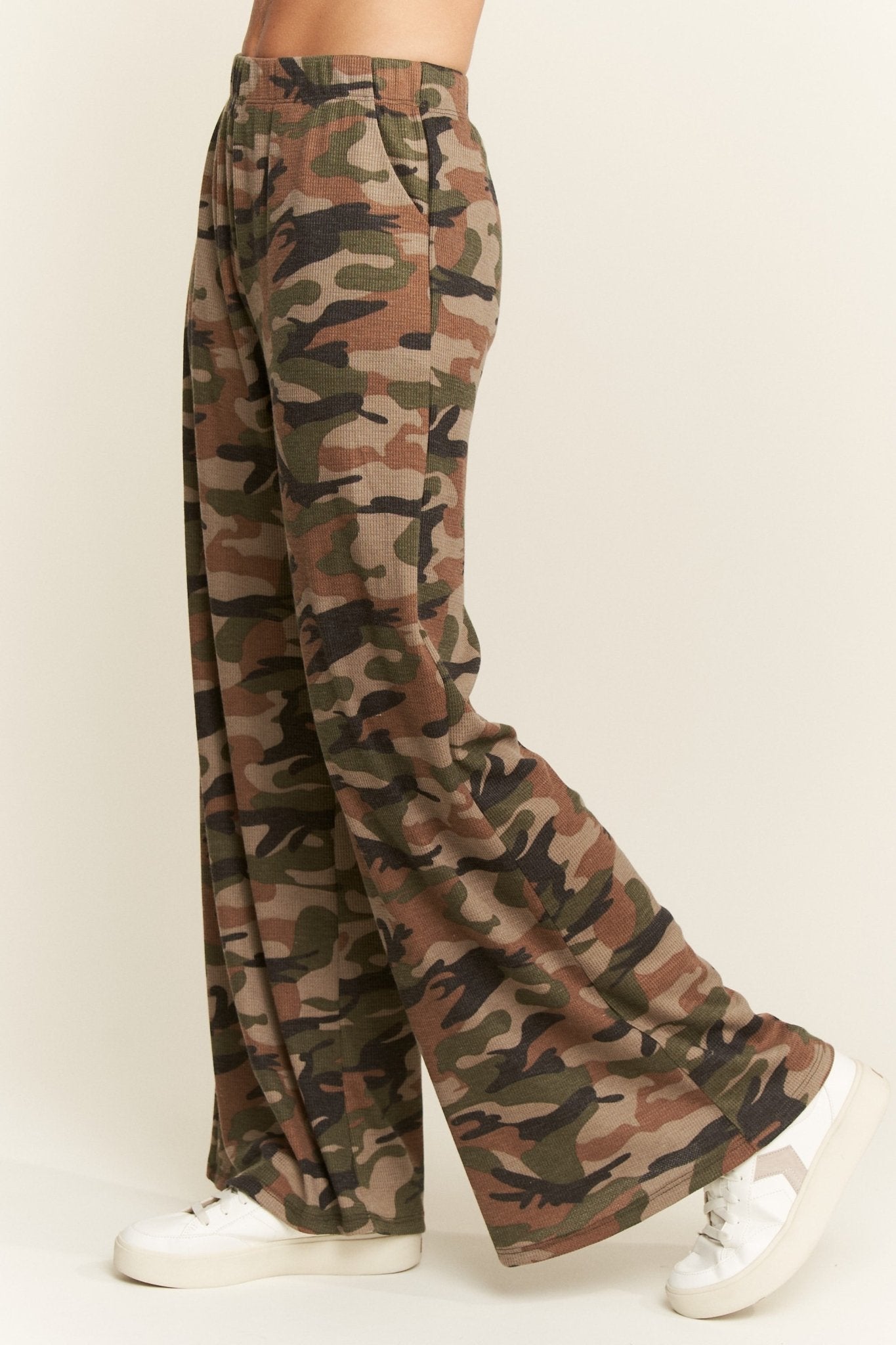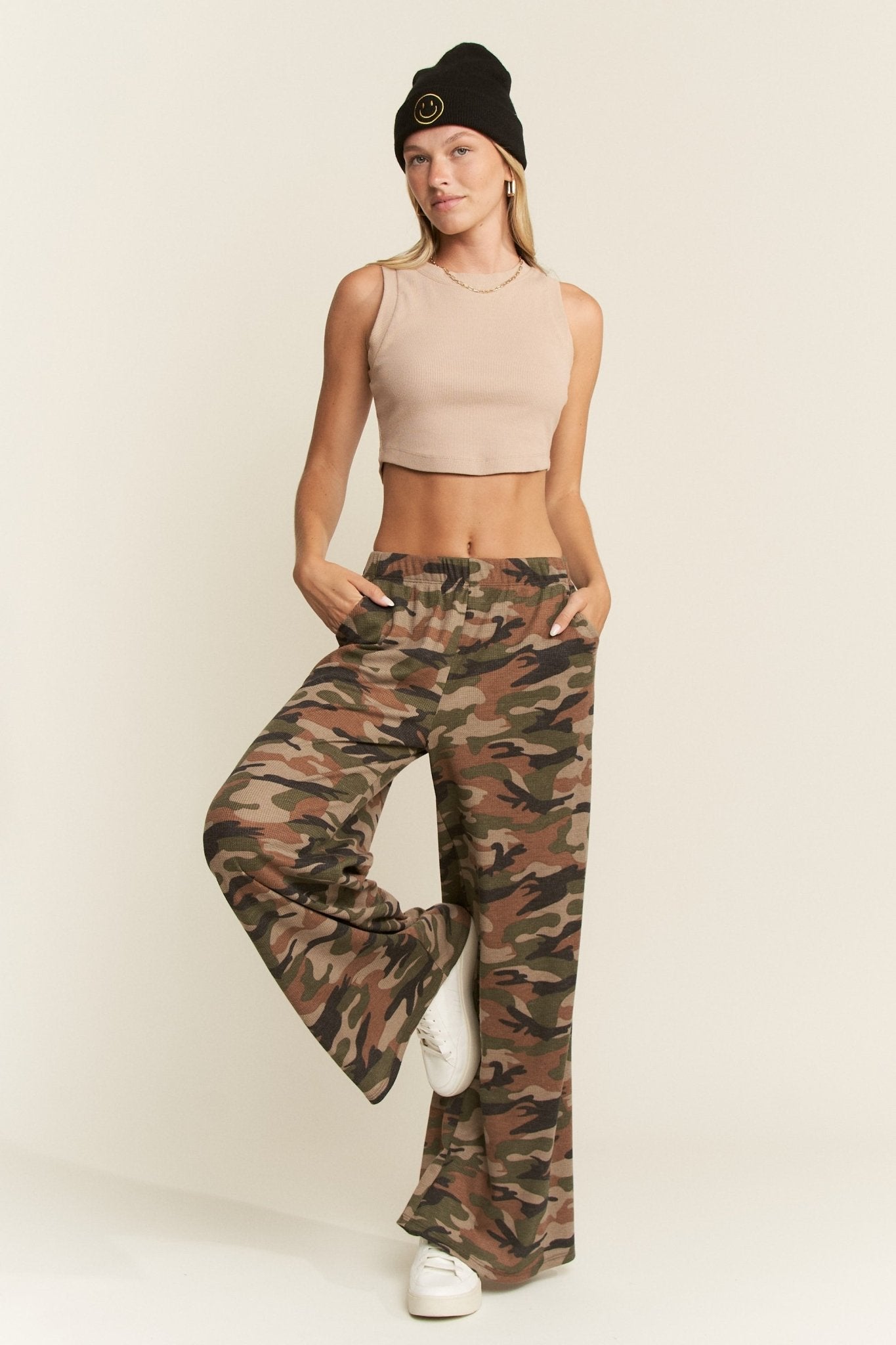 Step into comfort and style with these Army Camo Wide Leg Pants! Featuring a high-waisted silhouette and flattering flare leg, they're designed to make a statement. The elastic waistband keeps you comfy all day, while the stretchy knit material moves with you effortlessly. Practical pockets mean you've got somewhere to stash your essentials, and the full-length cut gives you that polished, put-together vibe. Whether you're dressing up or keeping it casual, these camo pants are your new go-to for bold, confident style.