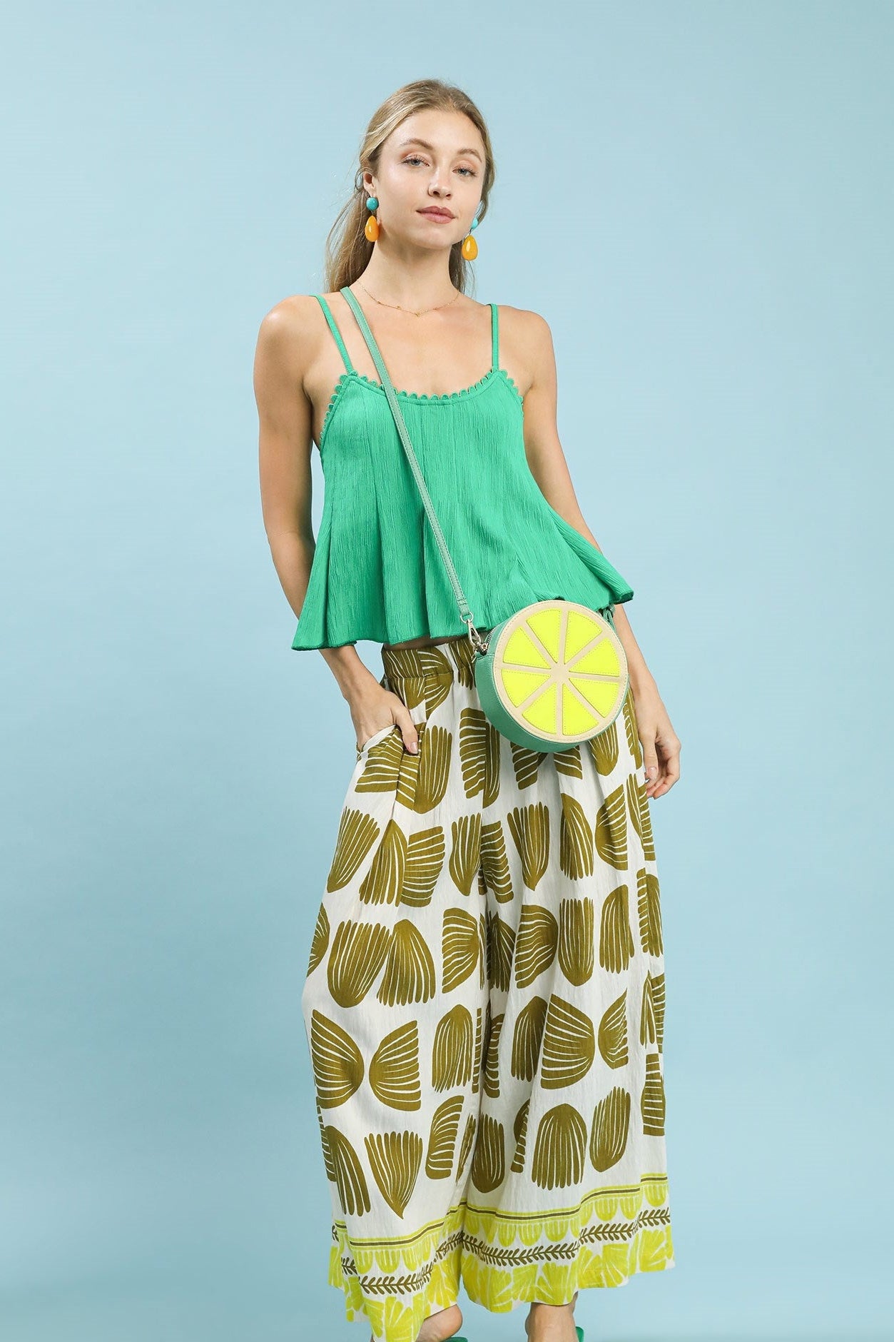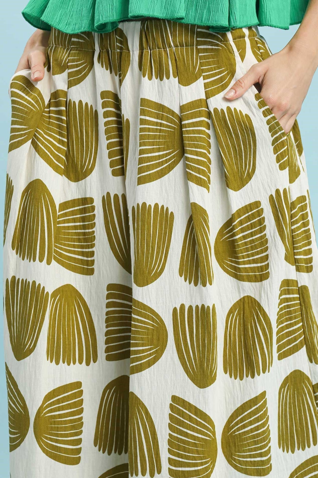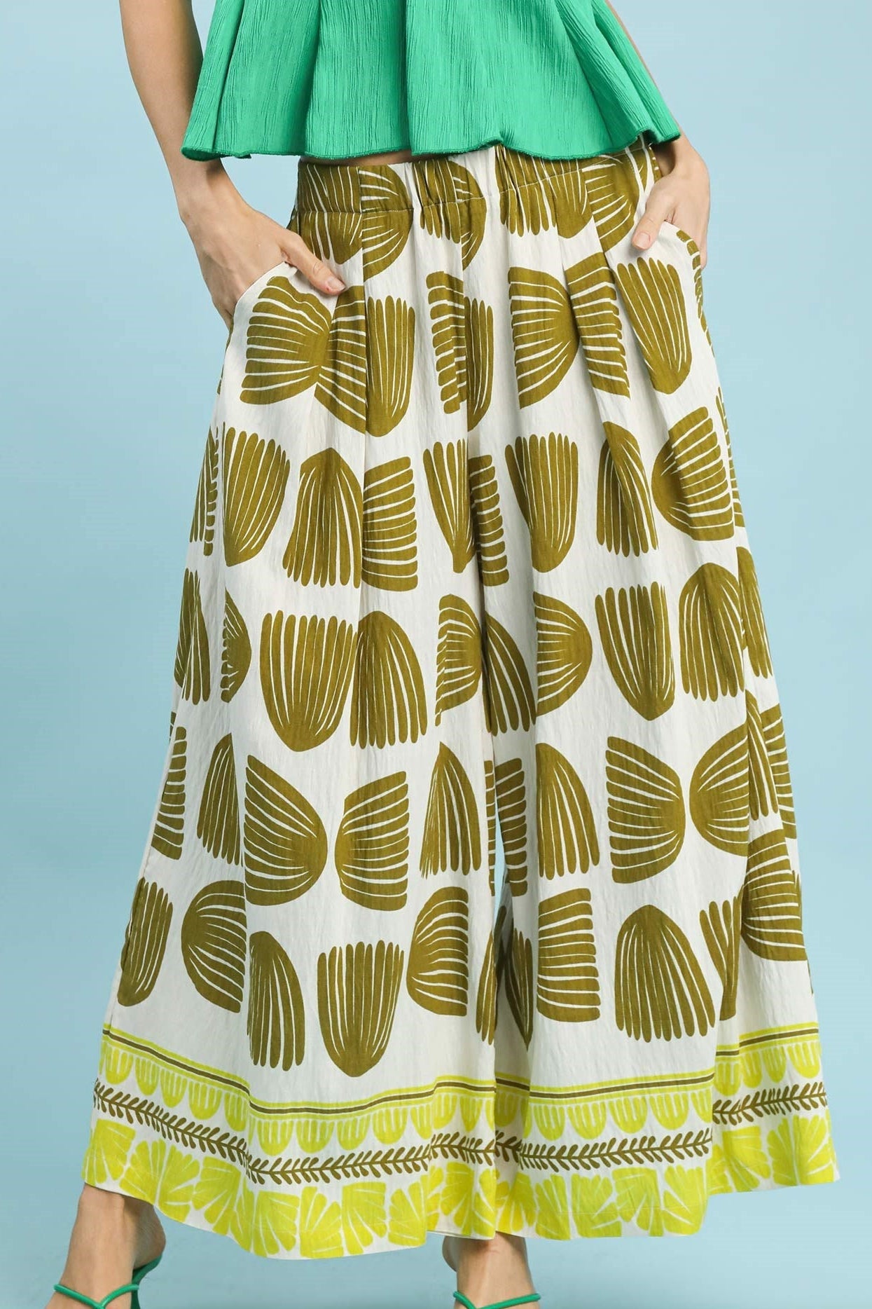 Strut your stuff in these fabulous Leaflight Palazzo Pants! Featuring a chic shell block boarder print, these wide-leg wonders flow with effortless style. The elastic waistband keeps you comfy all day long, while handy side pockets let you stash your essentials. Lined shorts construction adds an extra layer of polish. Perfect for turning heads at brunch, the office, or anywhere you want to feel like the main character!