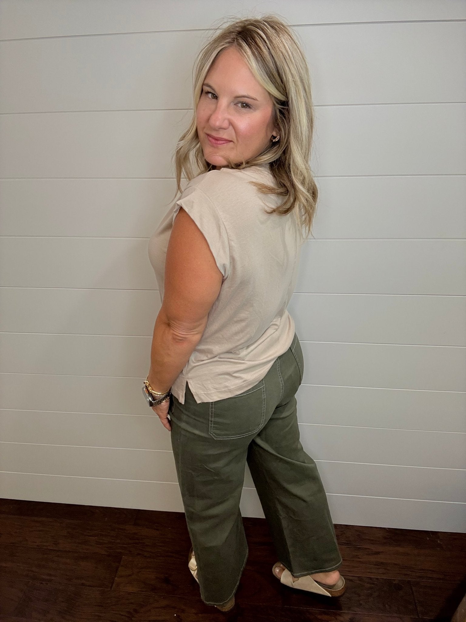 Step out in style with these playful high-waist pants that blend comfort and flair. Featuring a button fly-front zipper closure and eye-catching exposed stitching, they add a fun twist to your everyday look. Lightweight woven fabric keeps you cool while patch pockets at the front and back offer handy spots for your essentials. Unlined and non-sheer, they’re perfect for breezy days and effortless moves.
