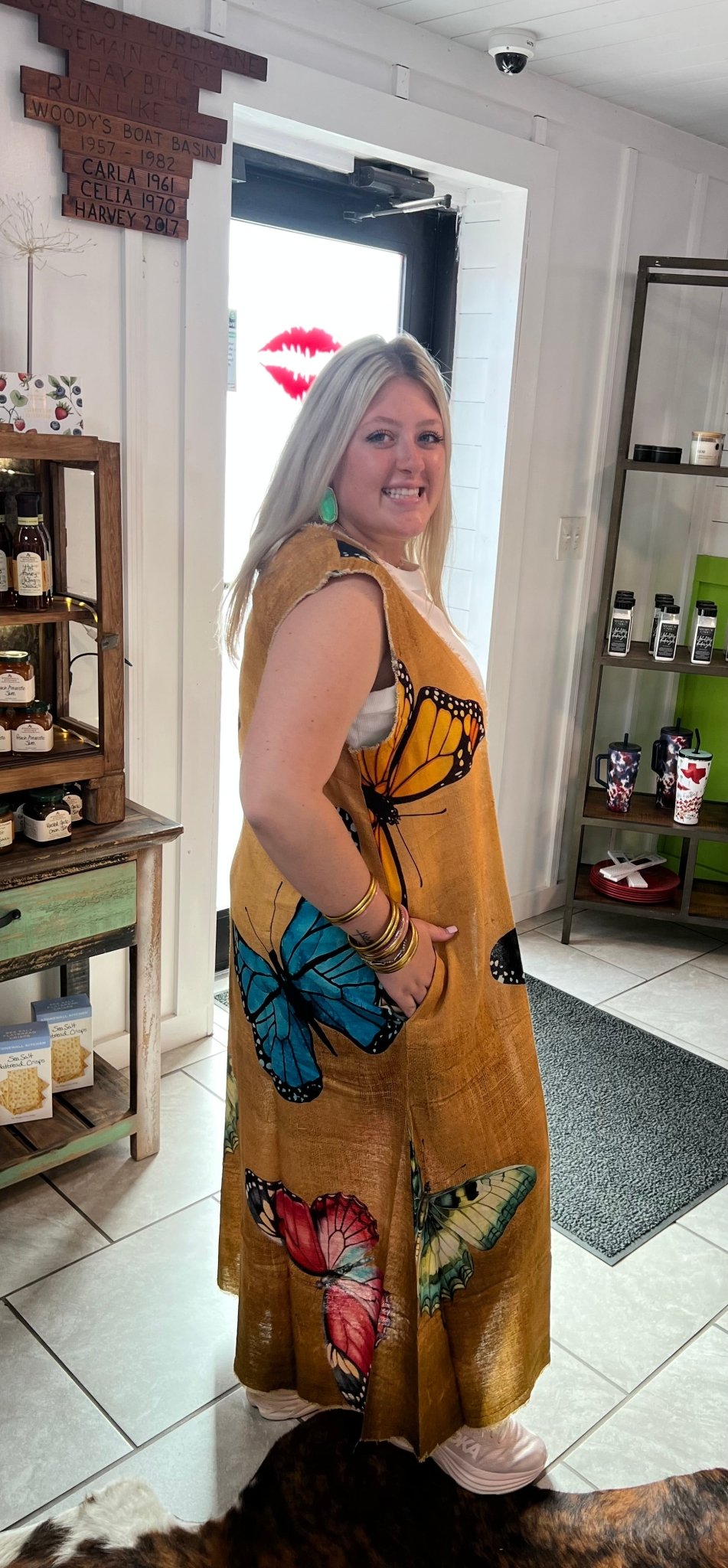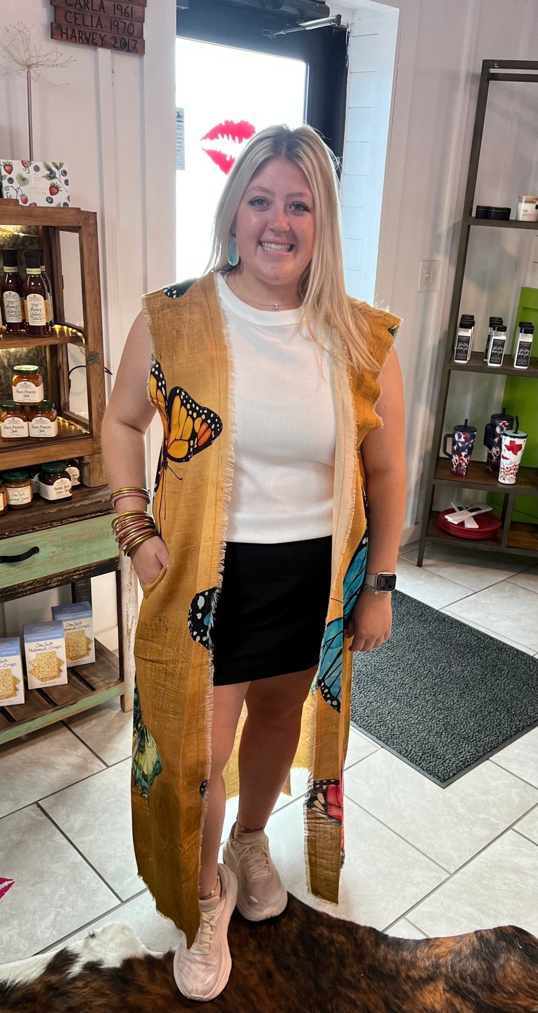 Embrace whimsy with the Winged Wonder Cardigan Vest, featuring a charming butterfly theme that adds flair to any outfit. Its playful frayed edges bring effortless cool and texture, making it the perfect layering piece to flutter through your day in style.