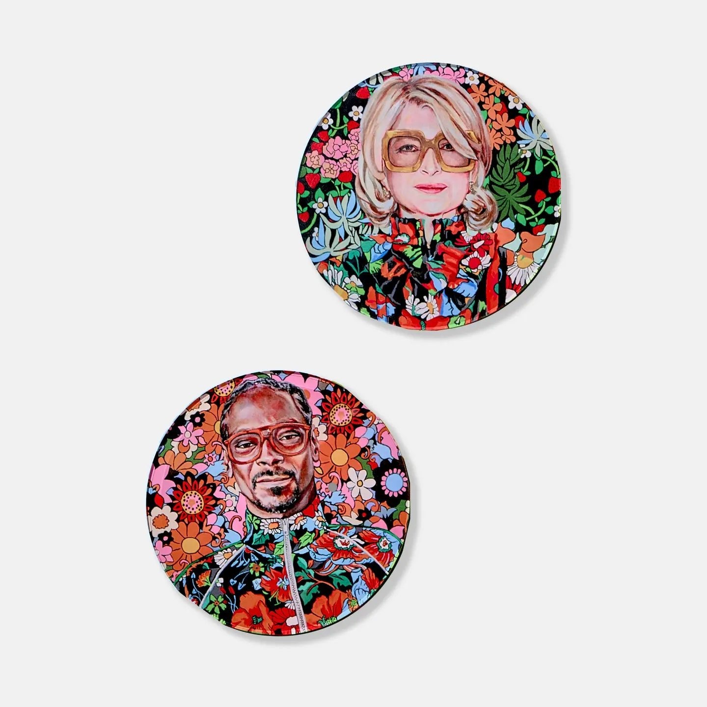 A set of four, packaged in a sleek acrylic display box with a coordinating band - Double-sided (Martha on the front, Snoop on the back!)