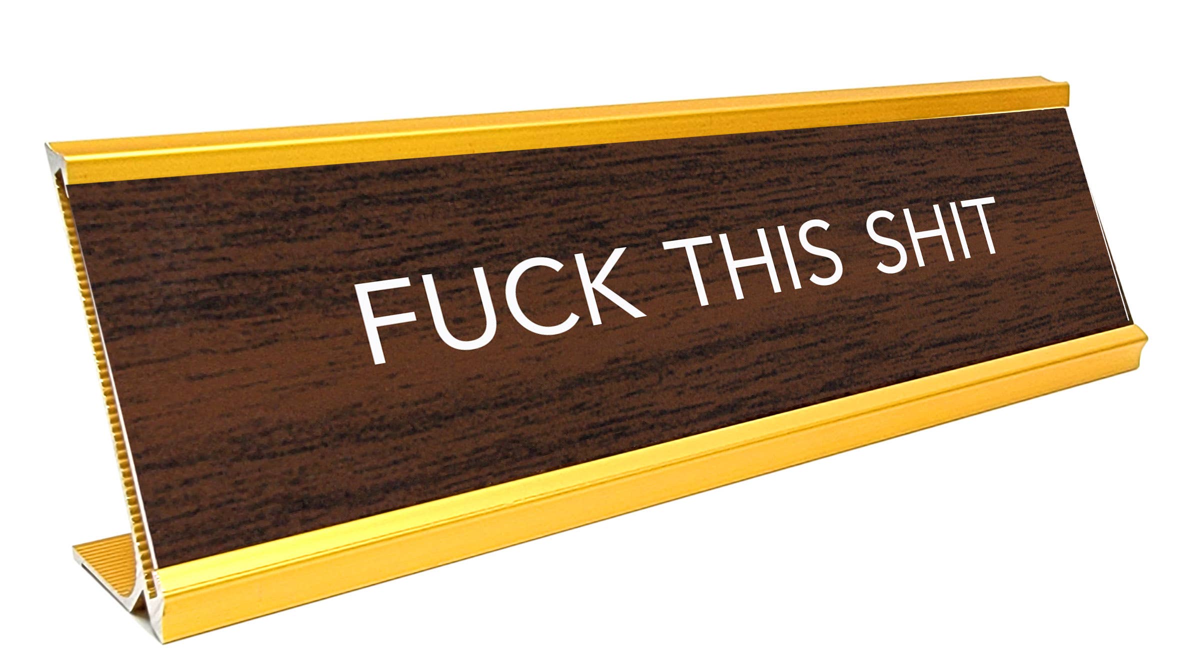 Funny Novelty Desk Plate, "Fuck This Shit"- Brown Print on Gold Frame