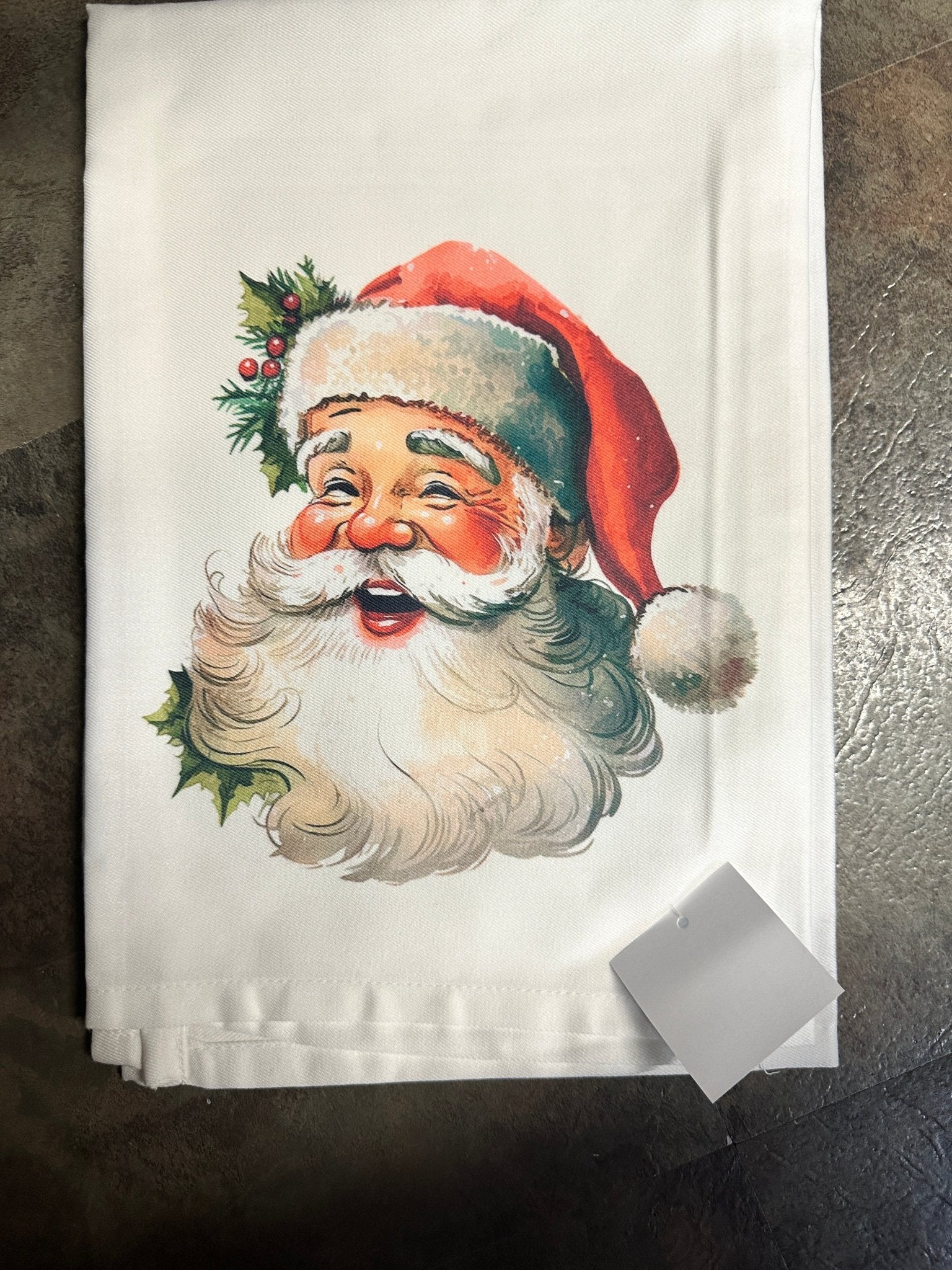 Bring holiday cheer to your kitchen with our Vintage Santa Tea Towel! This charming towel features a nostalgic Santa design that adds a touch of whimsy to your holiday decor. Perfect for drying dishes, wiping spills, or simply hanging as a festive accent. It's the little touches that make the season bright!