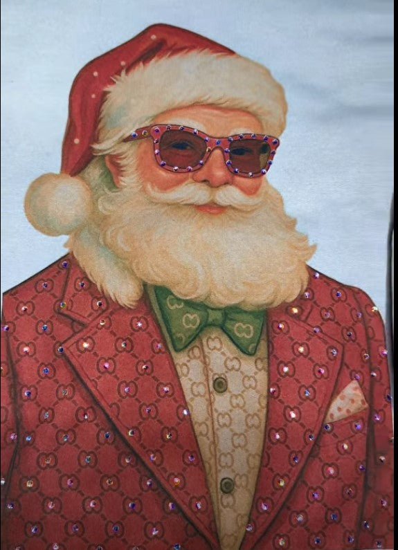 Meet the most fashionable Santa of the season! This standout sweatshirt features a trendy, decked-out Santa dressed in a luxe patterned suit, complete with a festive green bow tie and sparkling retro sunglasses. His classic beard paired with his modern, glam style makes this piece the perfect blend of vintage charm and holiday flair. Cozy, eye-catching, and full of personality, this sweatshirt is ideal for Christmas parties, holiday outings, or anytime you want to sleigh the season with bold style.