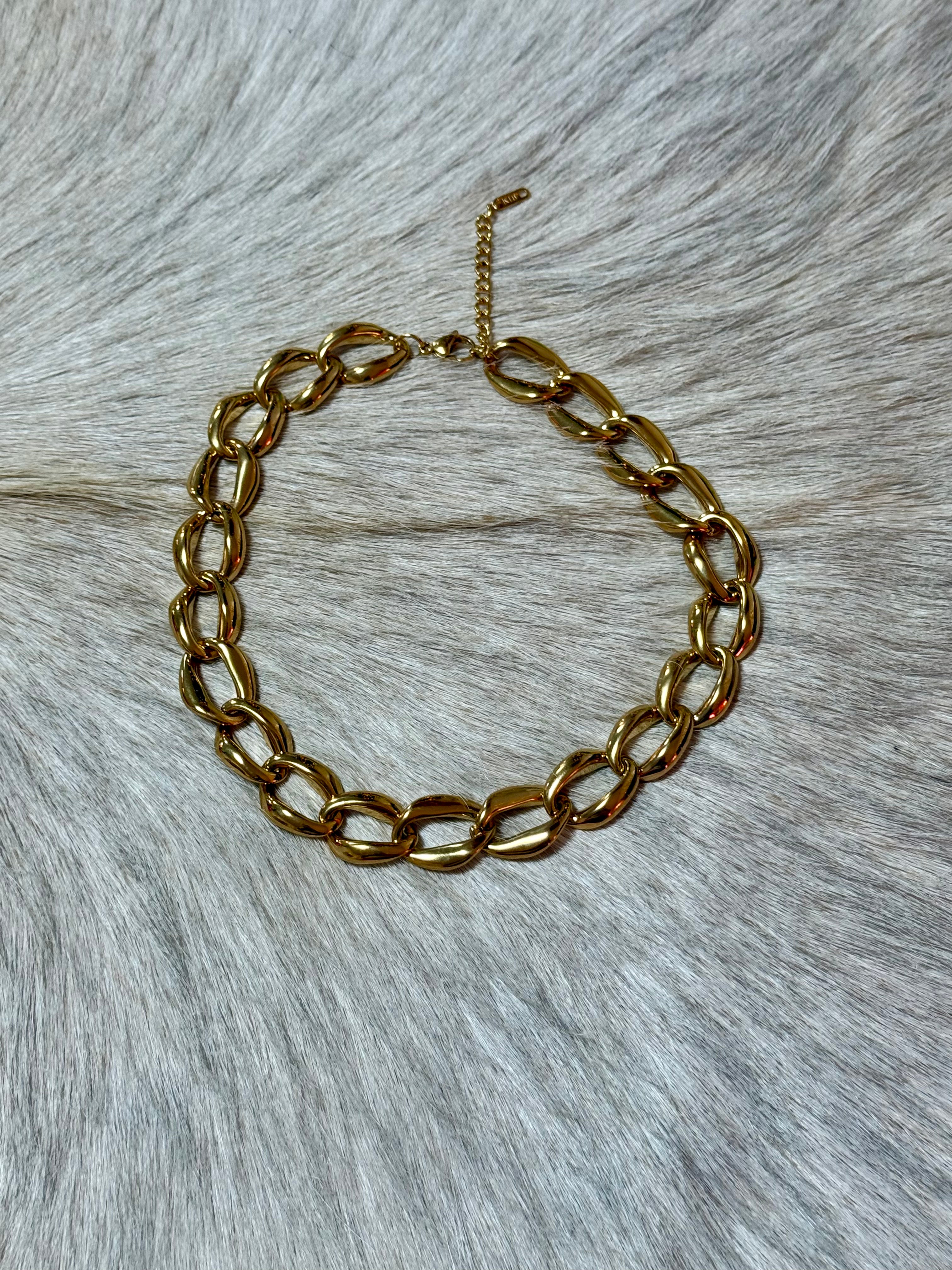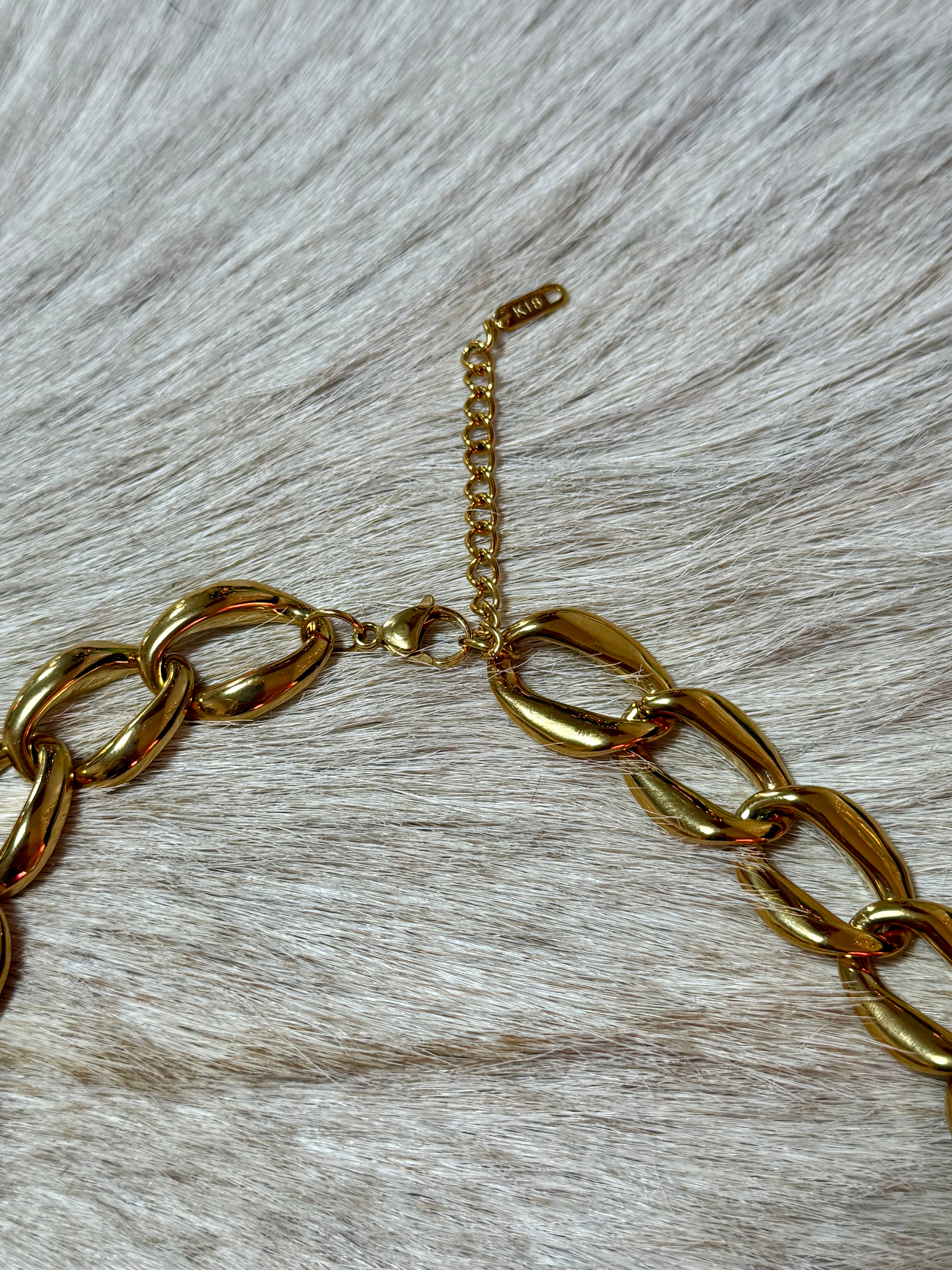 Catch the celestial vibes with our Eclipse Link Necklace—a stunning gold piece that's equal parts cosmic and chic. This sleek piece features interlocking links that create a mesmerizing design, perfect for adding a touch of celestial magic to any outfit. Whether you're dressing up for a night out or elevating your everyday look, this necklace is your ticket to effortless elegance. Wear it close to the neck for maximum impact and let your style shine bright like the stars.