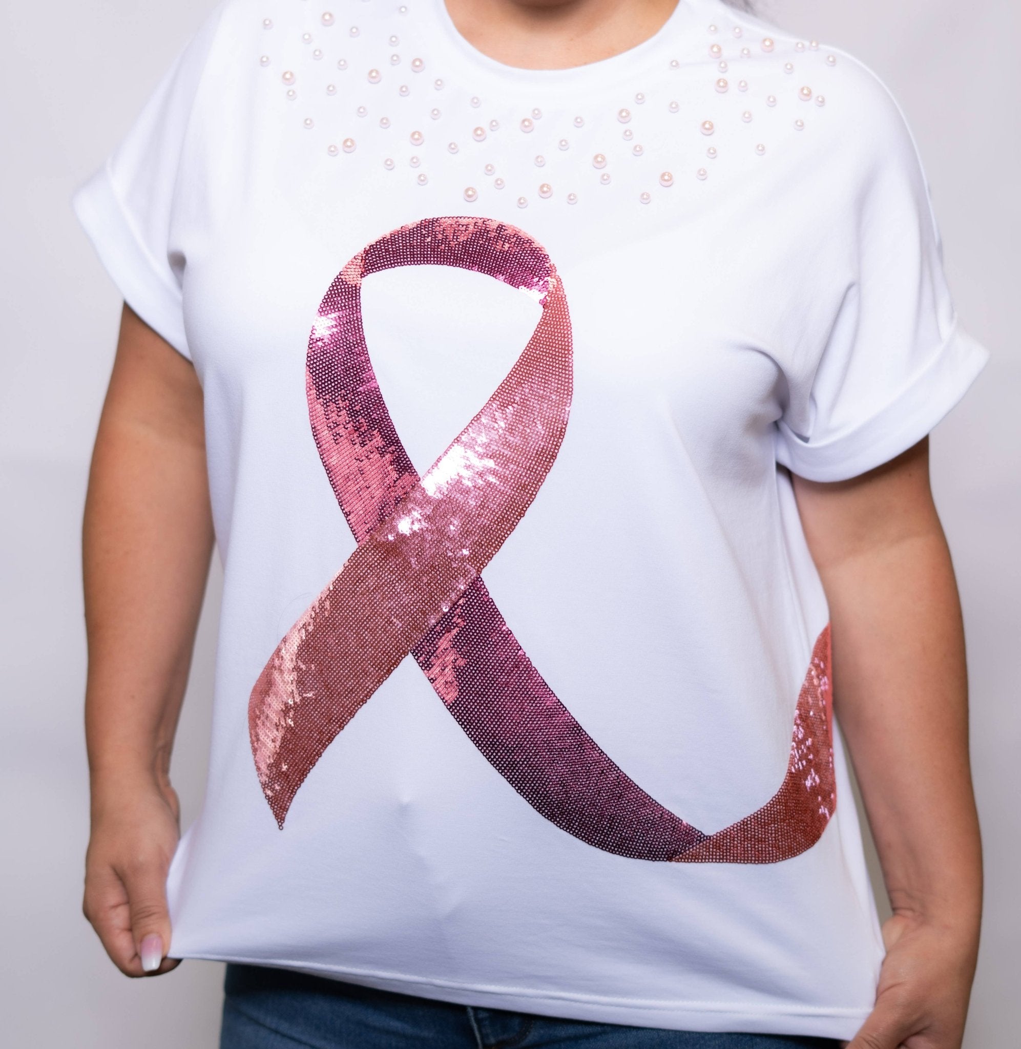 Ribbon & Pearls Breast Cancer Awareness Sequin Tee