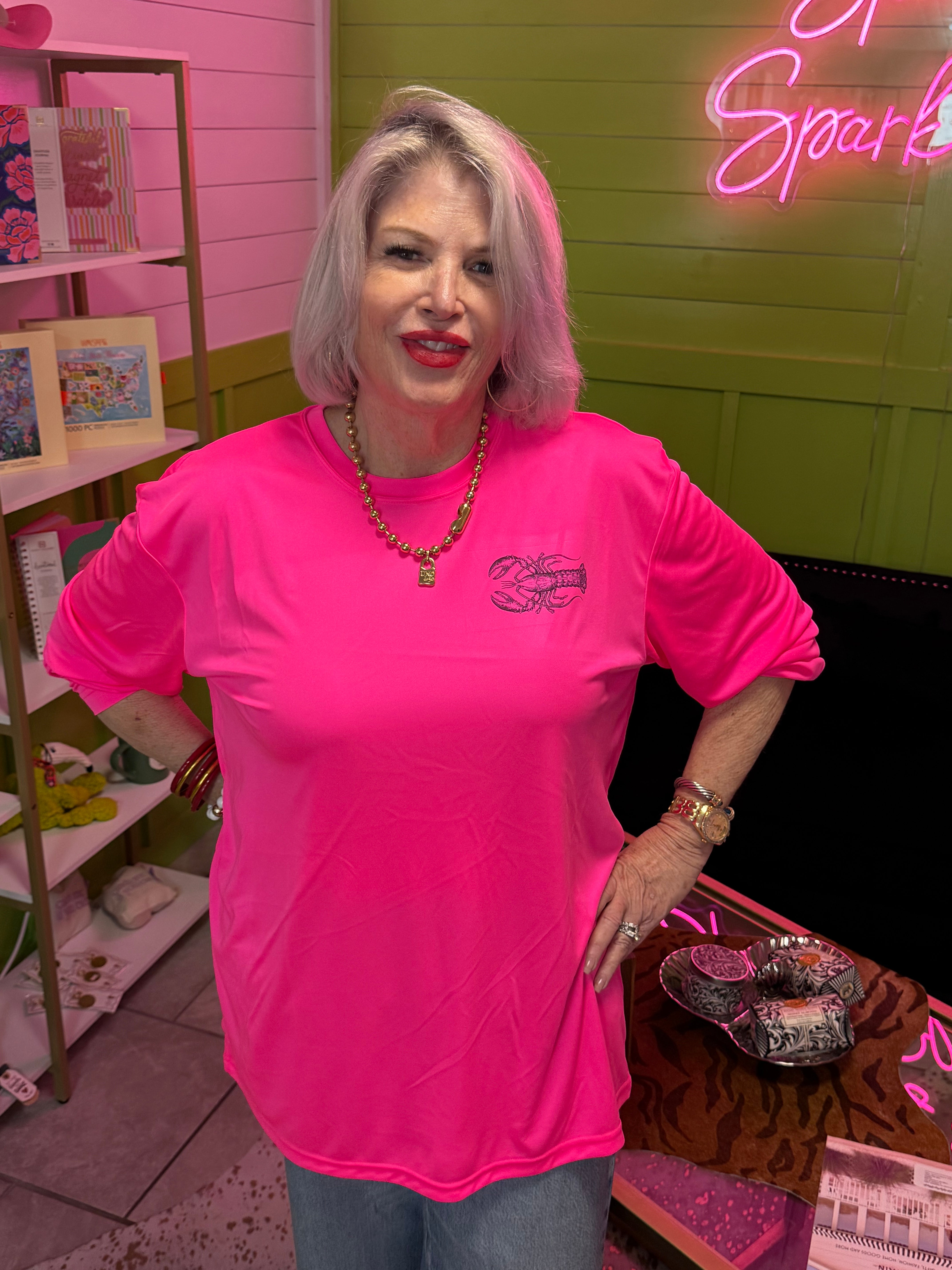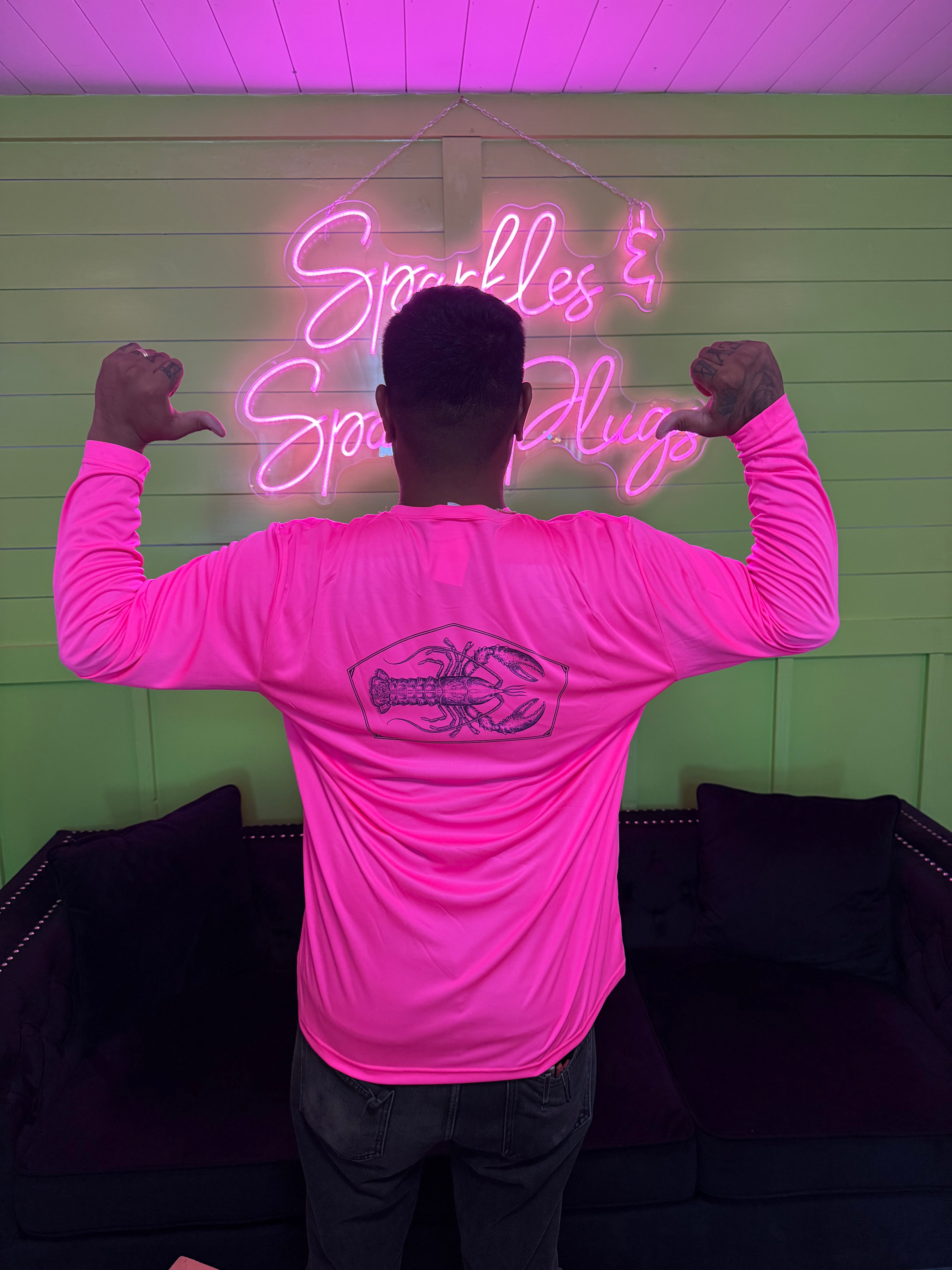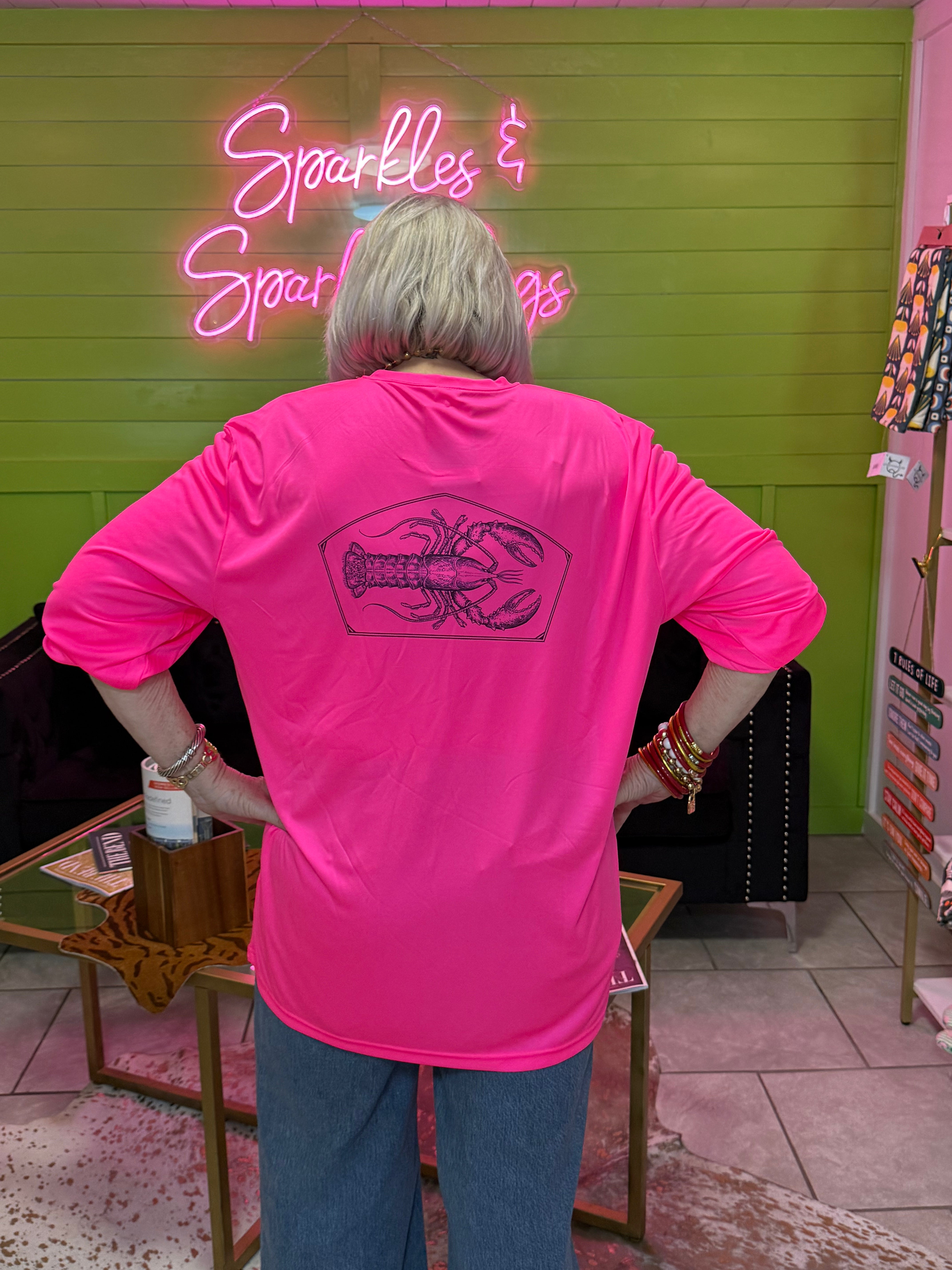 Dive into fun with the Reel Bright Lobster Shirt! This unisex long-sleeve tee in hot pink features a charming blue-outlined lobster, adding a splash of seaside whimsy to your wardrobe. Perfect for those who love bold colors and playful style, it’s a comfy choice for any casual outing or beach day adventure.