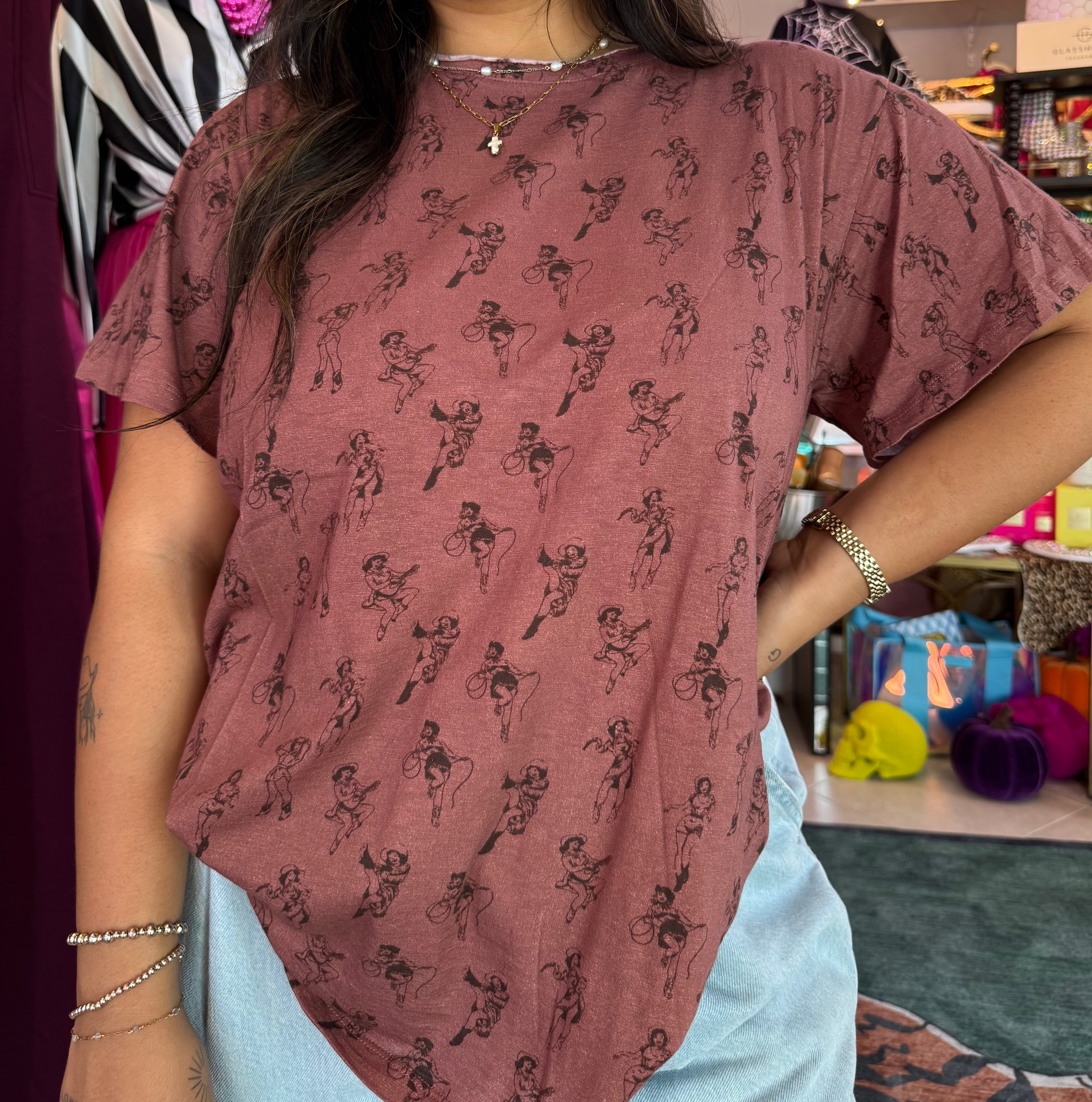 Show your wild side in the Rodeo Rebel Tee, where classic comfort meets a dash of fearless fun. Perfect for those who like to stand out, this tee is ready for whatever adventures the day throws your way. Whether you're hitting the rodeo or just riding through town, this playful shirt keeps your style fresh and bold.
