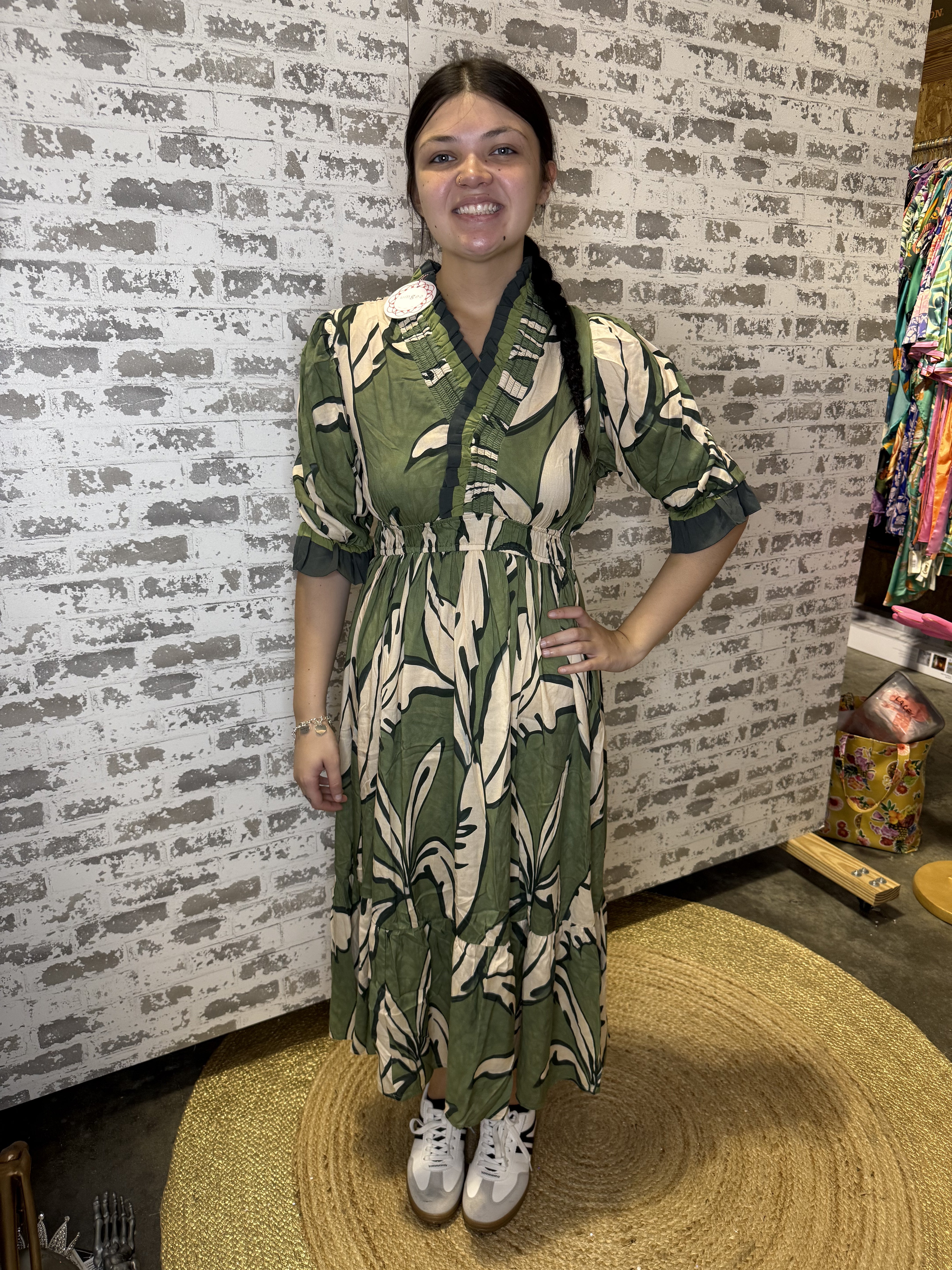 Step into the magic of the Sage Whisper Dress, where soft hues meet effortless charm. This dress flows with a gentle breeze, perfect for twirling through sunny days or cozy evenings. Its delicate design invites playful moments and endless compliments, making it your new favorite go-to for any occasion that calls for a touch of whimsy.
