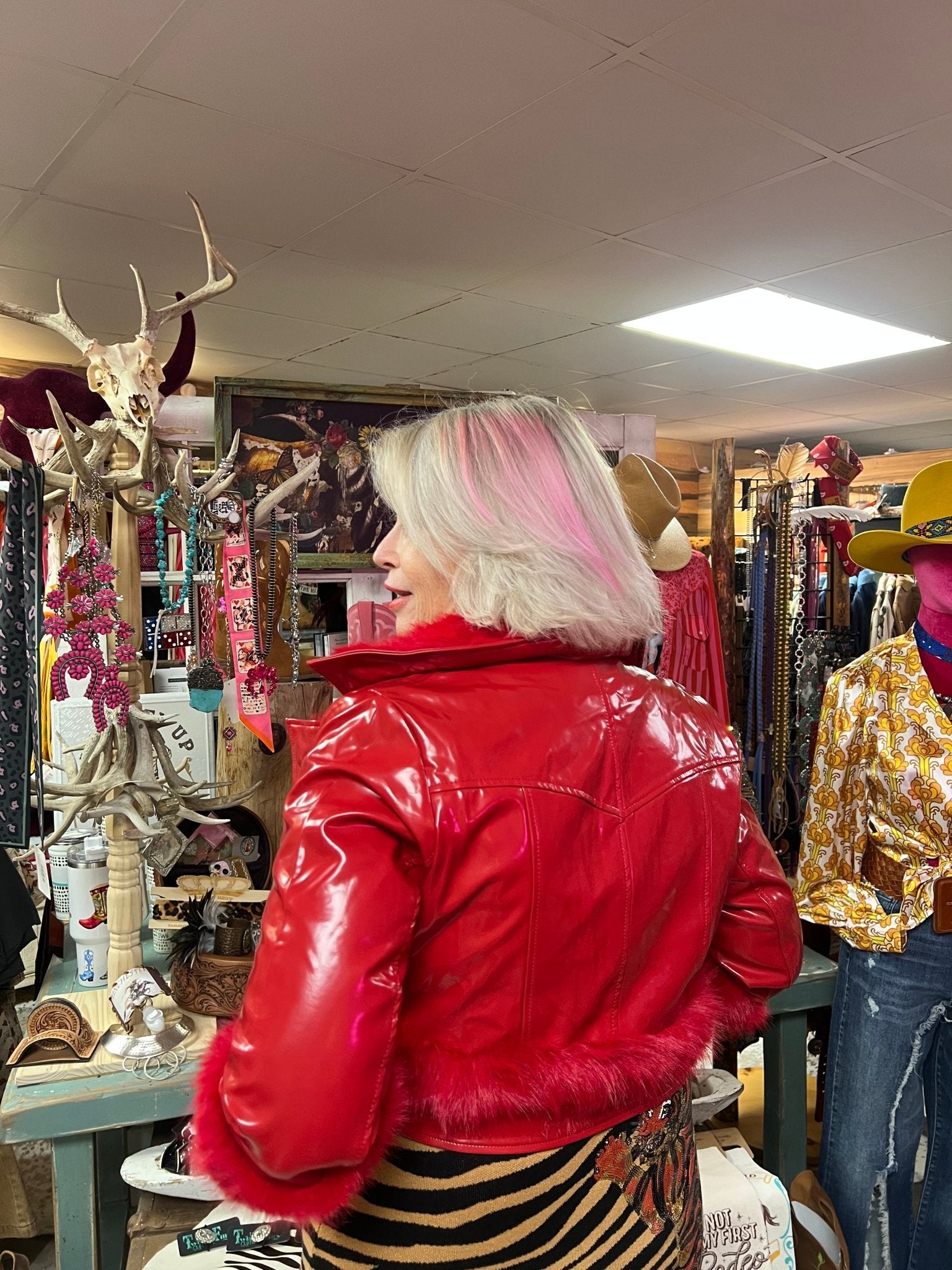 Stand out this season in our bold biker jacket featuring a faux fur collar and cuffs. A slightly cropped fit with a button front, this jacket is perfect for taking you from day to night in style.