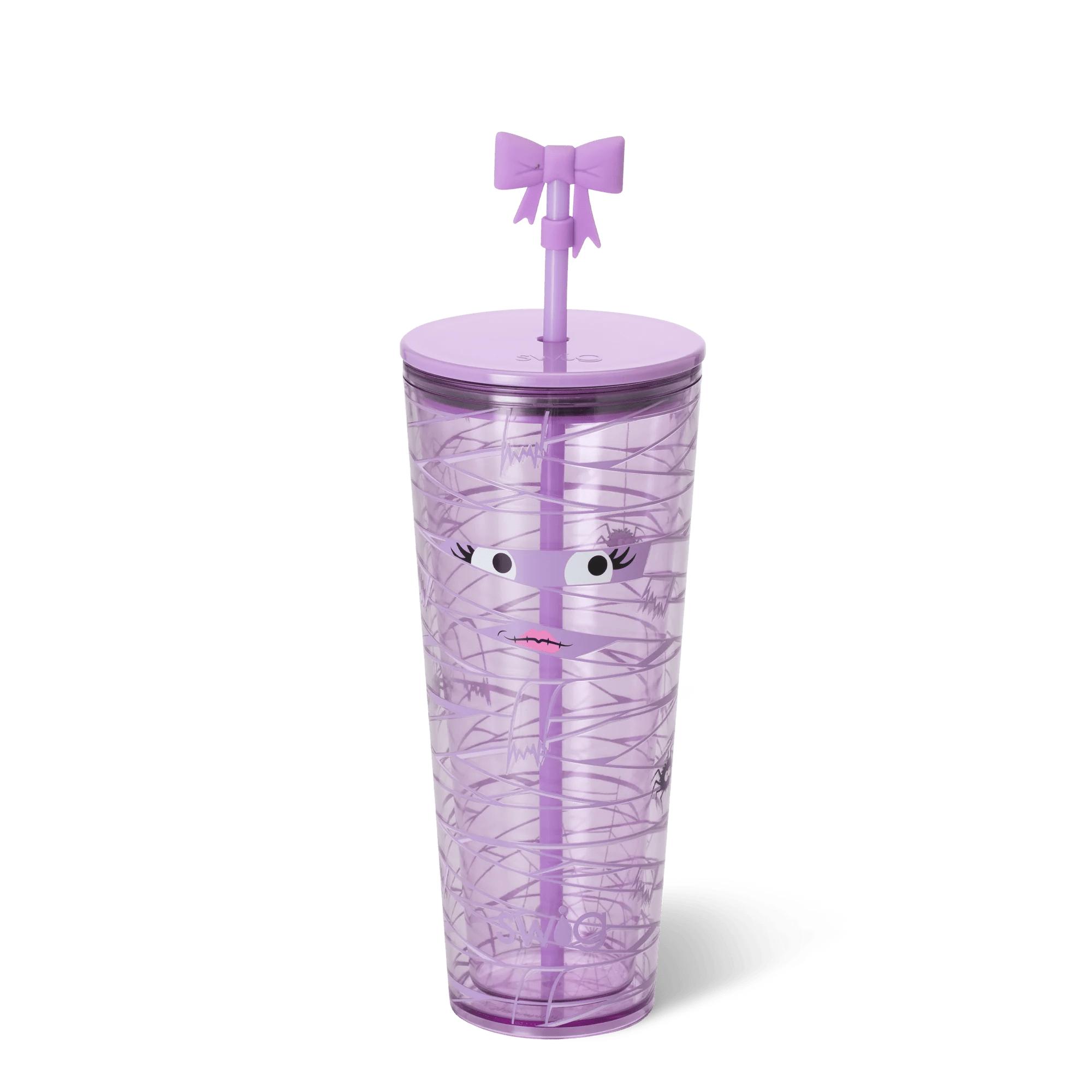 Perfect for whatever or wherever you drink! 🌟🥤 This mummy character comes to life with its hot pink lips on a lavender background.
