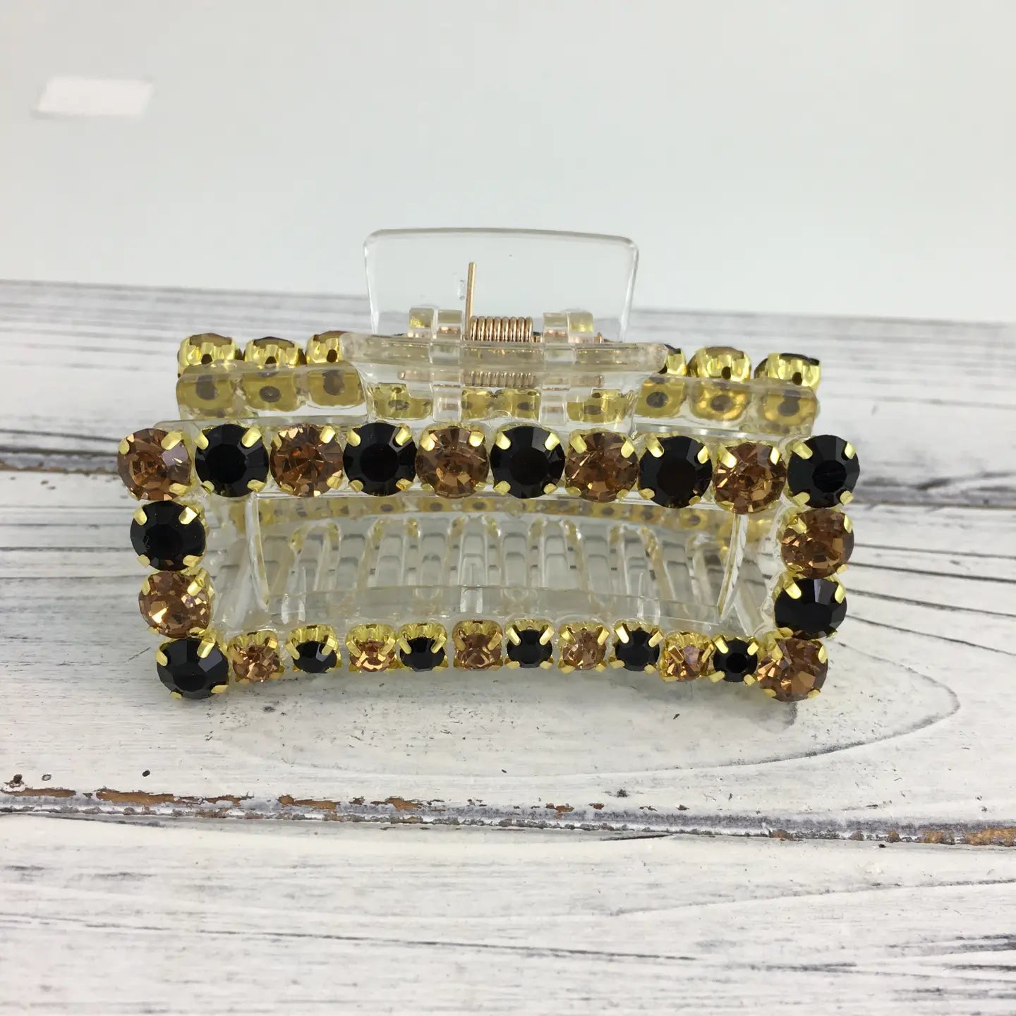 Elevate your hairstyle with this Black and Gold Stone Claw Clip, designed to add a touch of sparkle and sass. Its secure grip keeps your hair perfectly in place while the shimmering stones catch the light, making every look pop. Playfully chic and effortlessly stylish, this claw clip is your new go-to for quick glam moments!