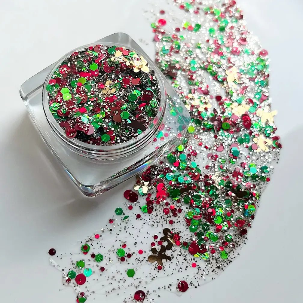 Add a twinkle to your holiday look with 15 ML of our festive Christmas Cookie Face and Body Glitter. Handmade with soothing Aloe Vera Cosmetic Gel, it’s perfect for face, body, and hair. Delight in sparkling gingerbread-shaped glitter specs in classic Christmas colors that bring playful cheer to any celebration.