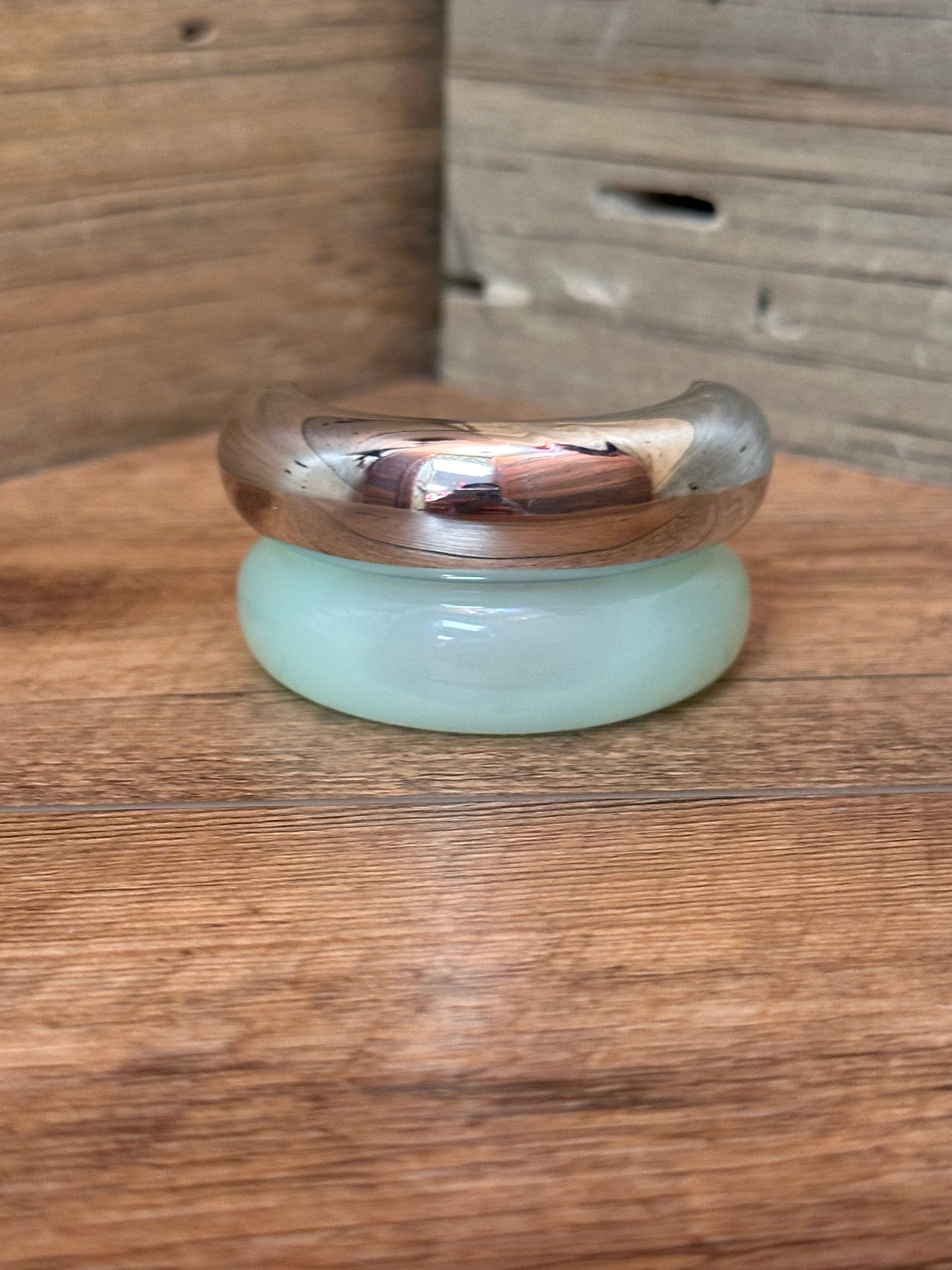 Add a splash of fun and freshness to your hair with this mint green and silver ponytail holder. Its unique combination of cool mint tones and shiny silver accents makes it the perfect playful accessory to brighten your look while keeping your hair neatly in place. Whether you're heading out for a casual day or a lively gathering, this ponytail holder adds a charming twist to your style.