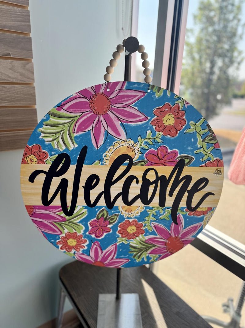 The Alani Welcome Door Hanger is the perfect “jewelry” for your door! Show off your style with a beautifully designed door hanger featuring a colorful floral design. Every DK Door Hanger is UV-printed on moisture-resistant, high-quality 1/4" board and sealed with two coats of gloss finish for lasting protection. Each design includes a fully wired beaded handle for easy hanging and display.