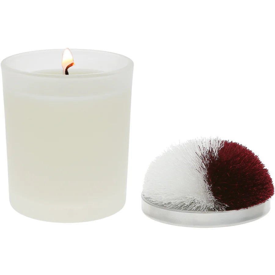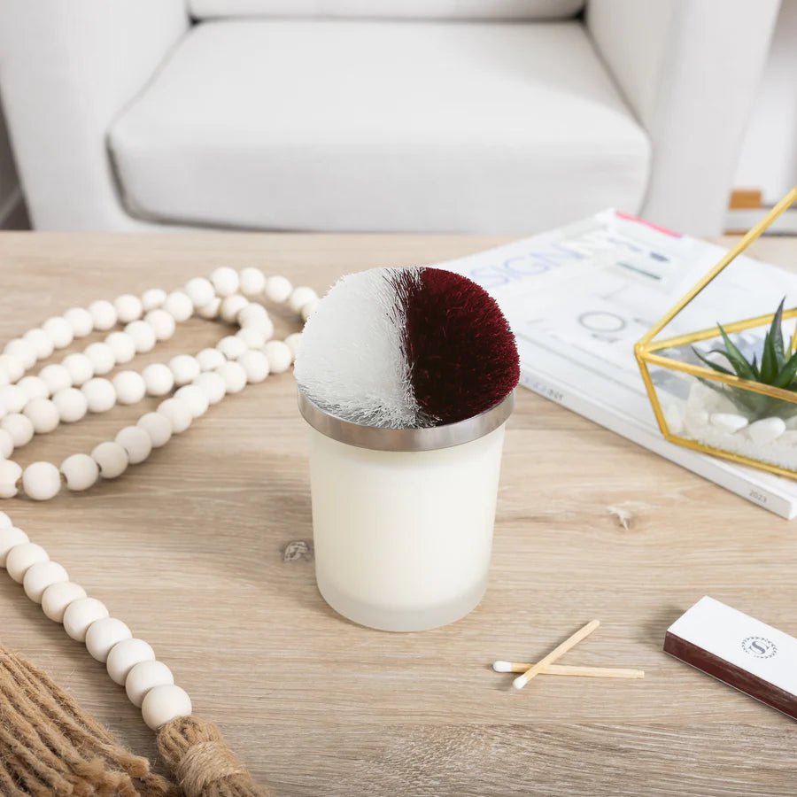 Bring home a cozy glow with our Blank Maroon & White candle—a playful 5.5 oz vessel filled with 100% soy wax in our signature Floral Tranquility scent. This frosted glass beauty measures 2.75" wide by 3.5" tall and features a charming maroon & white pom pom perched atop its metal lid. With a lead and nickel-free cotton wick, you'll enjoy 35-40 hours of burn time. The smooth bottom protects your furniture, while the snug silicone-banded lid keeps everything fresh. Perfect for any room, any season—just add your vibe!