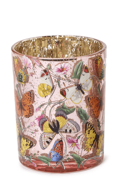 Invite a flutter of magic into your space with these enchanting Butterfly Silhouette Antiqued Candleholders. Each handcrafted glass piece captures delicate butterfly details in a vintage-inspired finish, perfect for casting a warm, inviting glow throughout your home. Whether you're setting a romantic mood in the bedroom or adding whimsy to your living room, these candleholders transform any corner into a garden sanctuary. Available in two sizes, they're ideal for mixing and matching across your décor. Light them up and watch your space come alive with cozy charm. Sold separately.