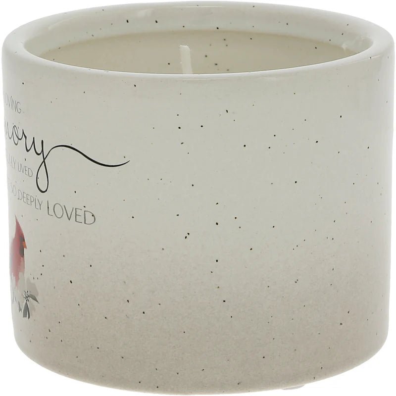 Light up a moment of remembrance with our In Loving Memory reveal candle. Crafted from 100% soy wax in a beautifully organic ceramic vessel, this 8 oz candle fills your space with calming jasmine tranquility while delivering a playful surprise. Watch as delicate cherry blossom branches, a cardinal, and the heartfelt message "Love Lasts Forever" gradually emerge during the first hour of burning—then mysteriously fade and reappear with each burn. With a single cotton wick (nickel and lead-free) and 21-24 hours of burn time, this memorial candle brings both comfort and wonder to any room. Trim the wick to 1/4" for the best experience and burn fully to the edge to reveal the magic within.