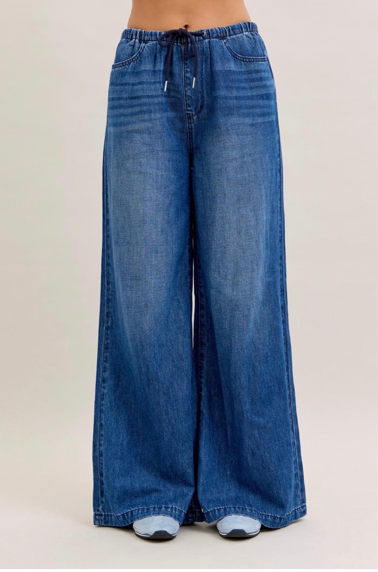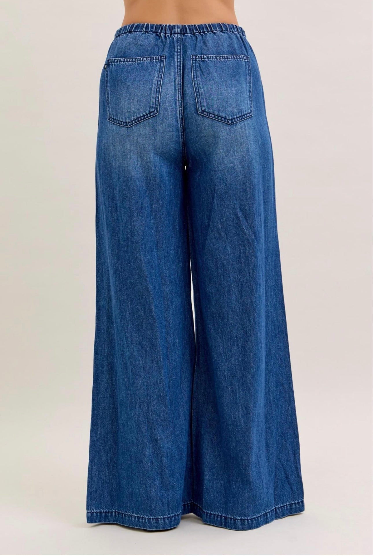 Meet your new go-to jeans for effortless style and ease. The All-Day Comfort Denim features a rich dark wash with a relaxed wide-leg silhouette and an adjustable drawstring waist for the perfect fit. Designed for all-day wear, these jeans blend laid-back comfort with a polished look, making them easy to dress up or down. Pair them with a fitted tee, cozy sweater, or chic blouse for a versatile denim staple you’ll reach for again and again.