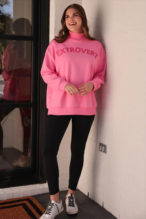 Embrace your outgoing spirit in our Extrovert Mock Neck Pullover—a cozy essential that celebrates your social side. This oversized pullover wraps you in plush fleece comfort while the mock neck adds modern sophistication. The bold "Extrovert" statement on the front makes it the perfect conversation starter for anyone who loves connecting with others. Whether you're heading out for coffee or settling in for a relaxed day, this piece proves comfort and personality go hand in hand.