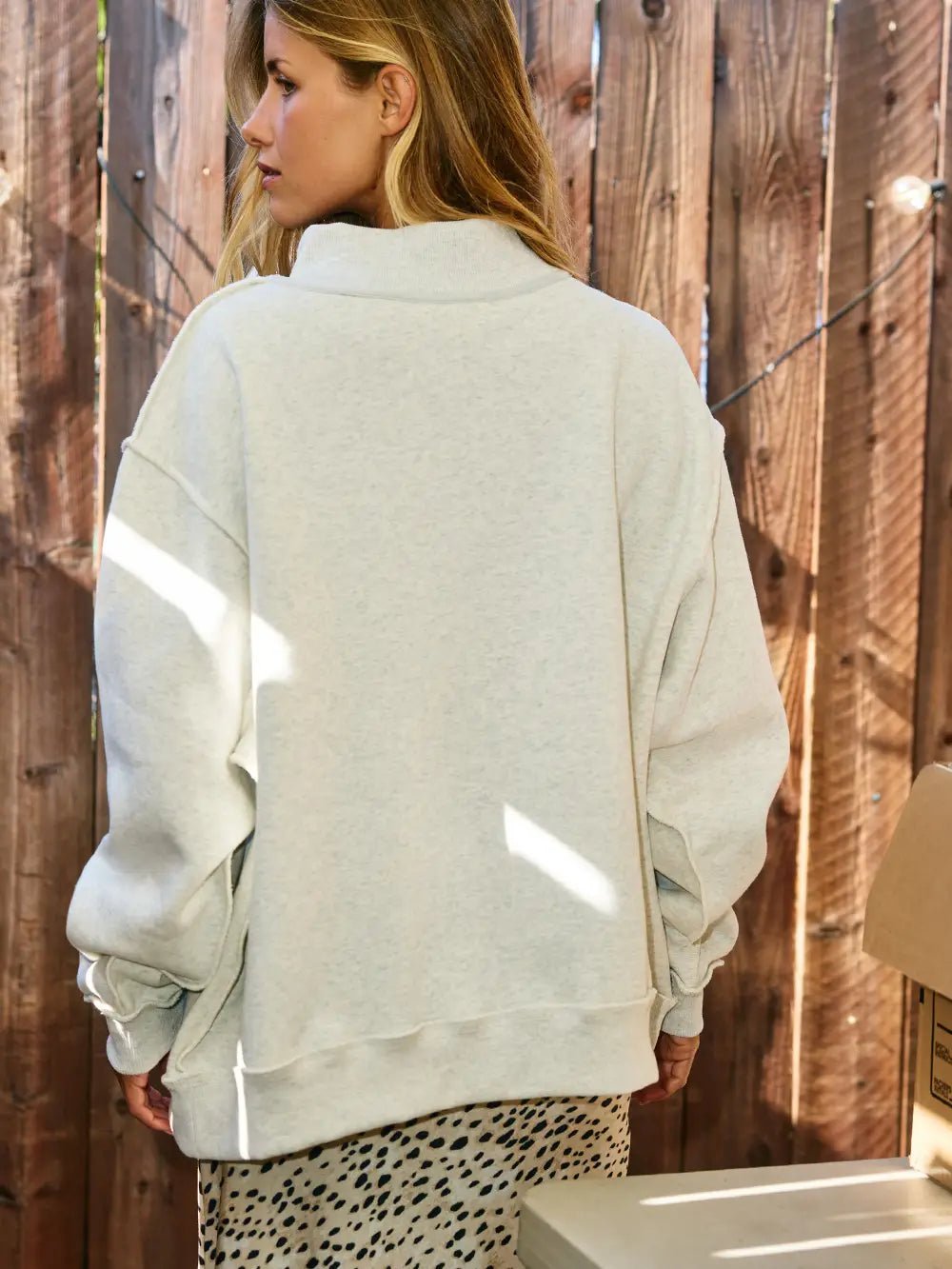 Flip your faith and your mood with this reversible mock-neck sweatshirt that's as versatile as your wardrobe needs. Wrapped in the softest cozy fleece, it features an oversized silhouette with drop shoulders and long sleeves for maximum comfort. Rib-banded cuffs and hemline keep everything in place while you switch between two distinct looks. Whether you're spreading good vibes or just vibing in comfort, this sweatshirt delivers both style and substance in one cozy package.