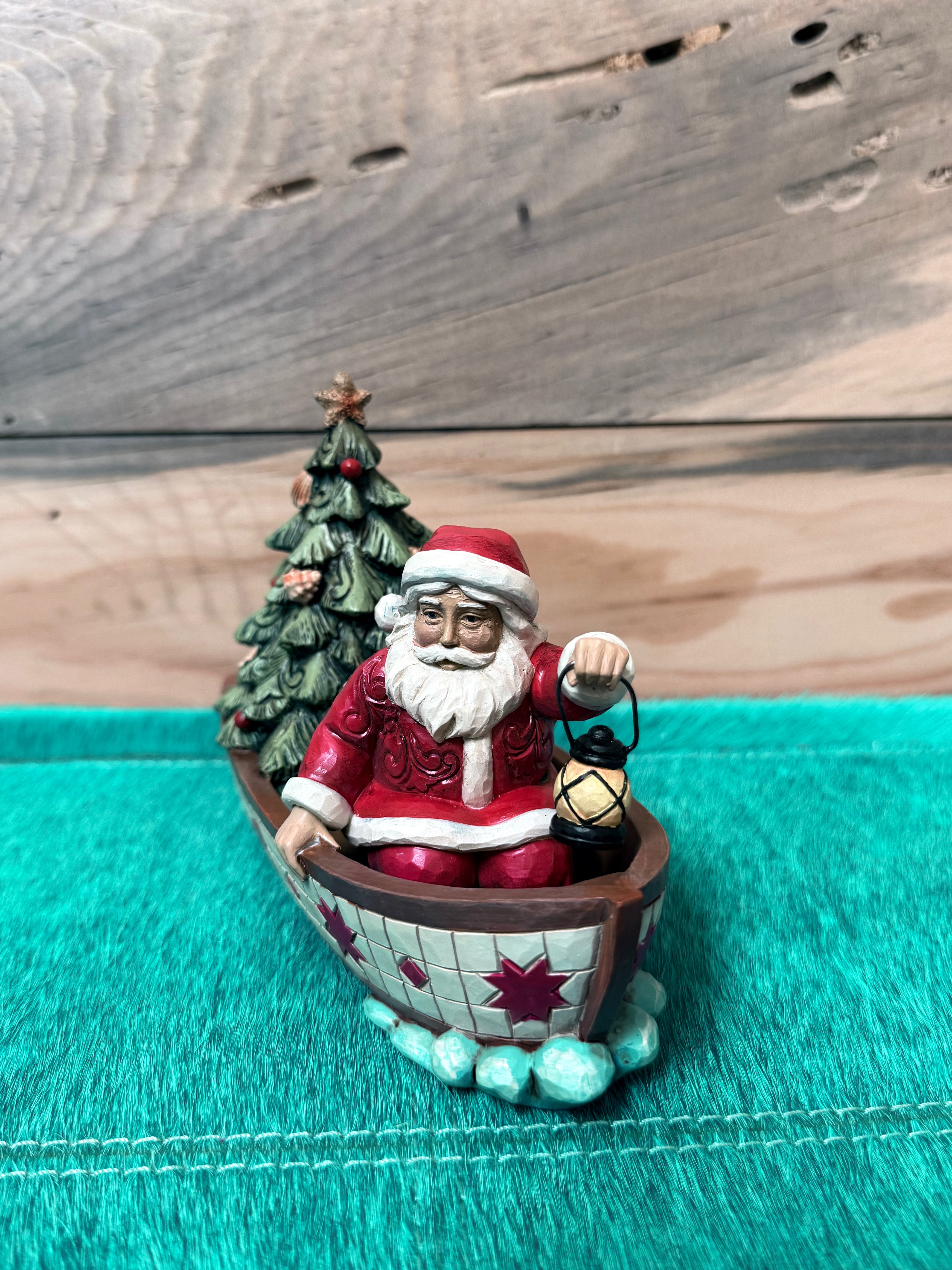 Santa in Boat with Tree Figurine