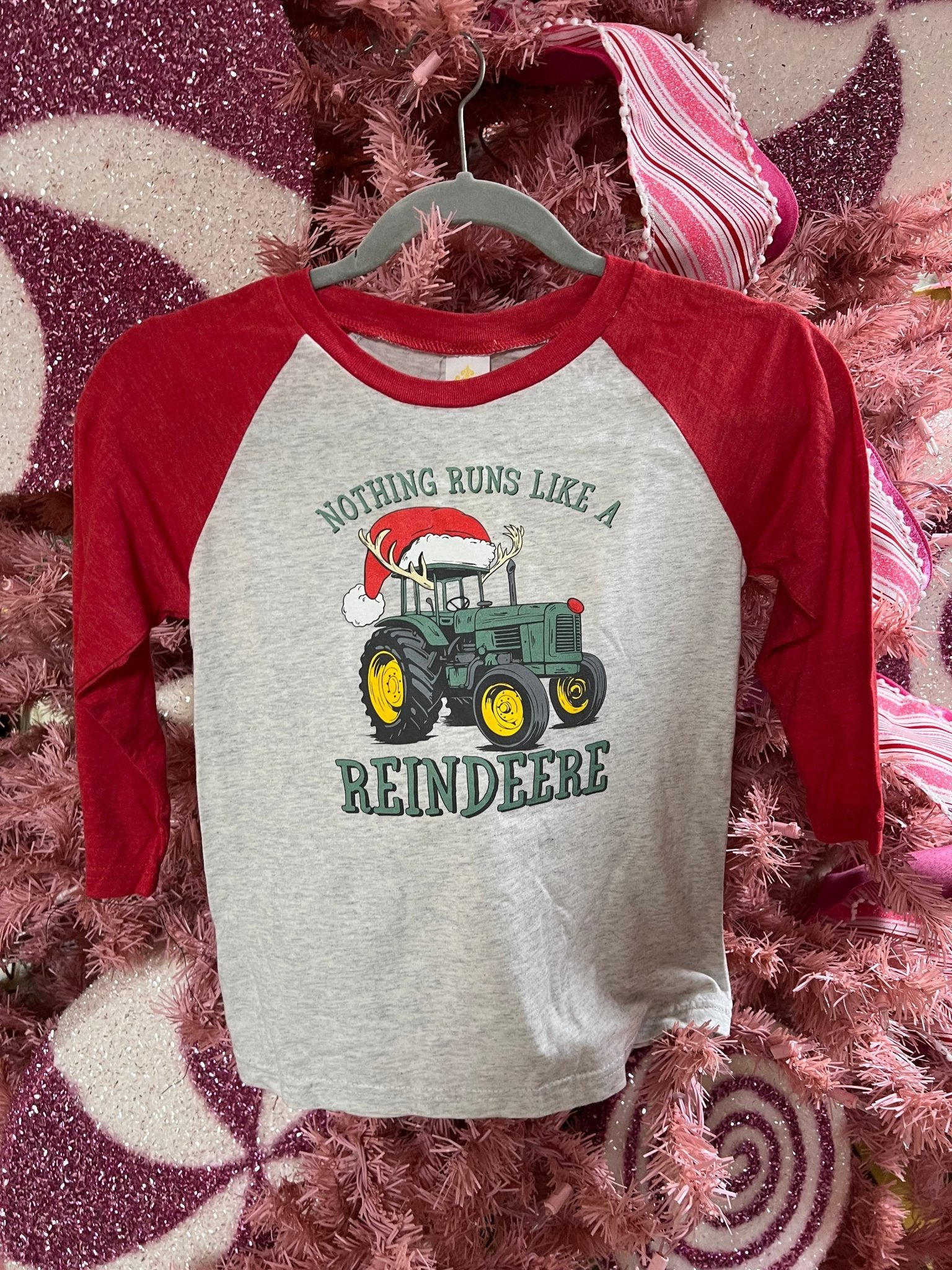 Get your little one ready to dash through the holidays with the Kids Runs Like a Reindeer Tee! Featuring vibrant red 3/4 sleeves and a fun, festive design, this tee adds a playful touch to any outfit. Comfortable for all-day wear, it’s perfect for lively kids who love to run, play, and spread holiday cheer.