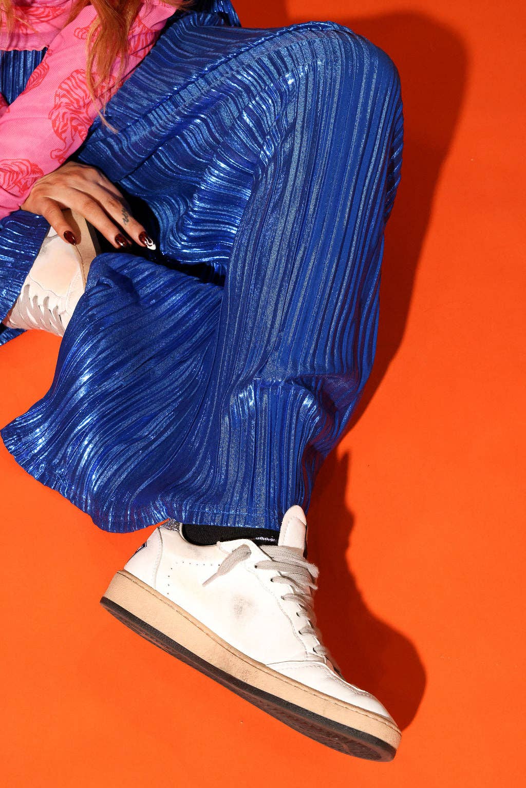 These blue metallic plissé pants are the definition of effortless statement dressing. The fabric catches the light with every move, giving that perfect shimmer without feeling over the top. Designed with a relaxed wide-leg fit and a comfy elastic waistband, they’re easy to dress up with heels or keep casual with sneakers and a graphic tee. Shiny, slouchy, and so good for any time you want to stand out.