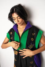 Add a playful tennis-inspired touch to your Mardi Gras look with this colorblock half zip dress! Featuring sequin appliqués of crowns and stars, it's perfect for a fun and unique look on and off the court and route. Wear it on its own or layer it over leggings for a versatile outfit. Game, set, match!
