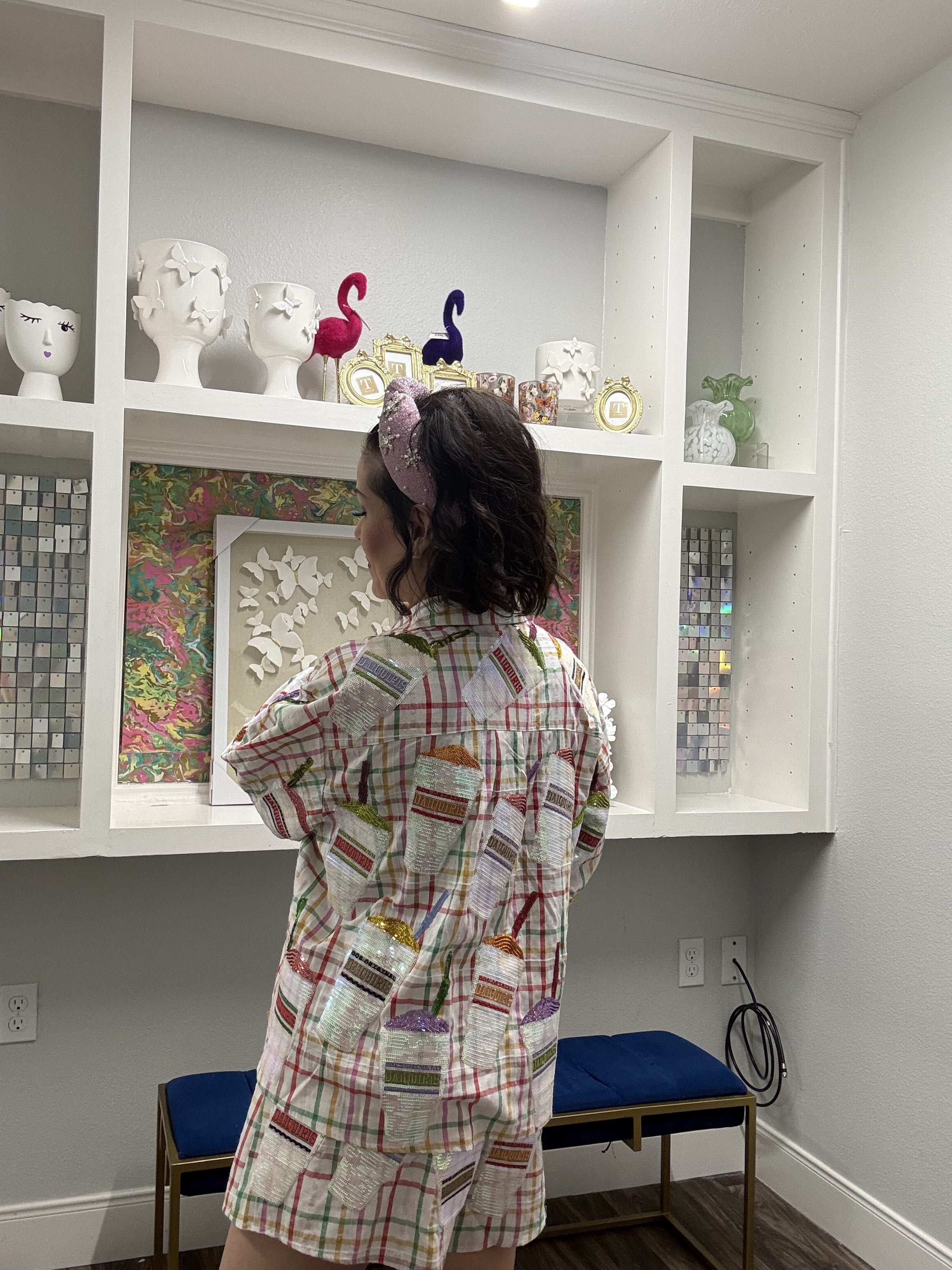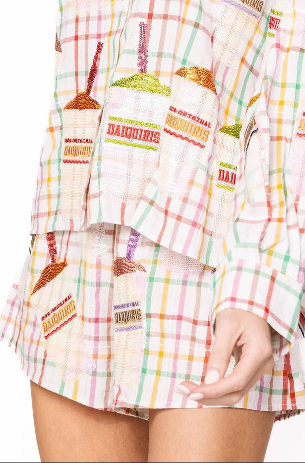 Queen of Sparkles Rainbow Plaid Daiquiri Cotton Short