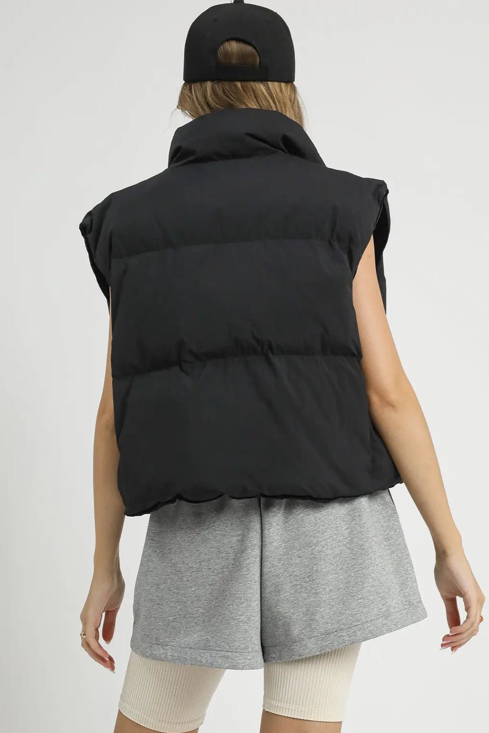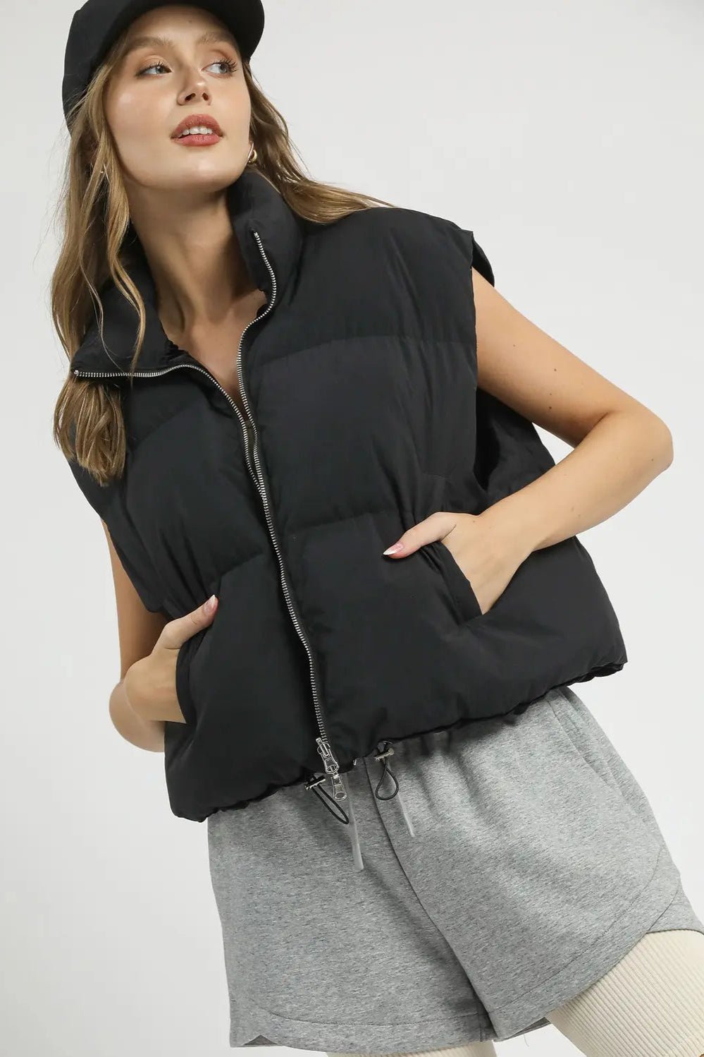 Stay cozy and stylish with the Midnight Puff Vest! This black puffer adds a fun, comfy layer to your outfit while keeping the chill at bay. Perfect for brisk walks or spontaneous adventures, it’s lightweight but ready to warm you up with a playful edge.