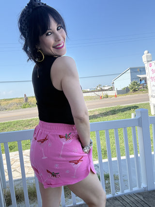 Queen of Sparkles QOS Bright Pink Christmas Cocktail Shorts