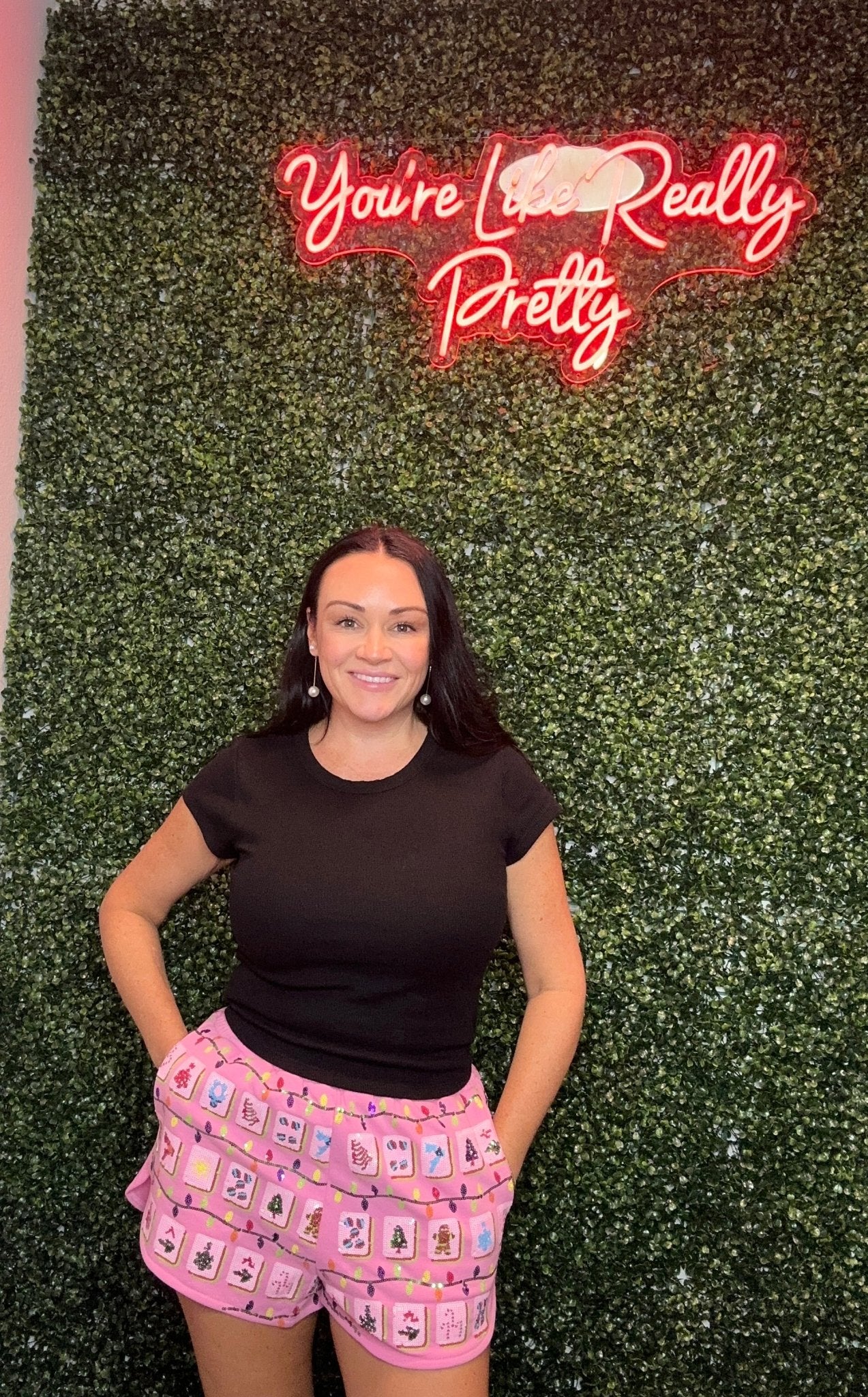 Add a festive twist to your style with the Queen of Sparkes Pink Christmas Mahjong Tile Short. These playful shorts feature a charming pink mahjong tile pattern, perfect for holiday fun and cozy comfort. Lightweight and stylish, they bring a cheerful vibe to your casual wardrobe while keeping you comfortable during the festive season.