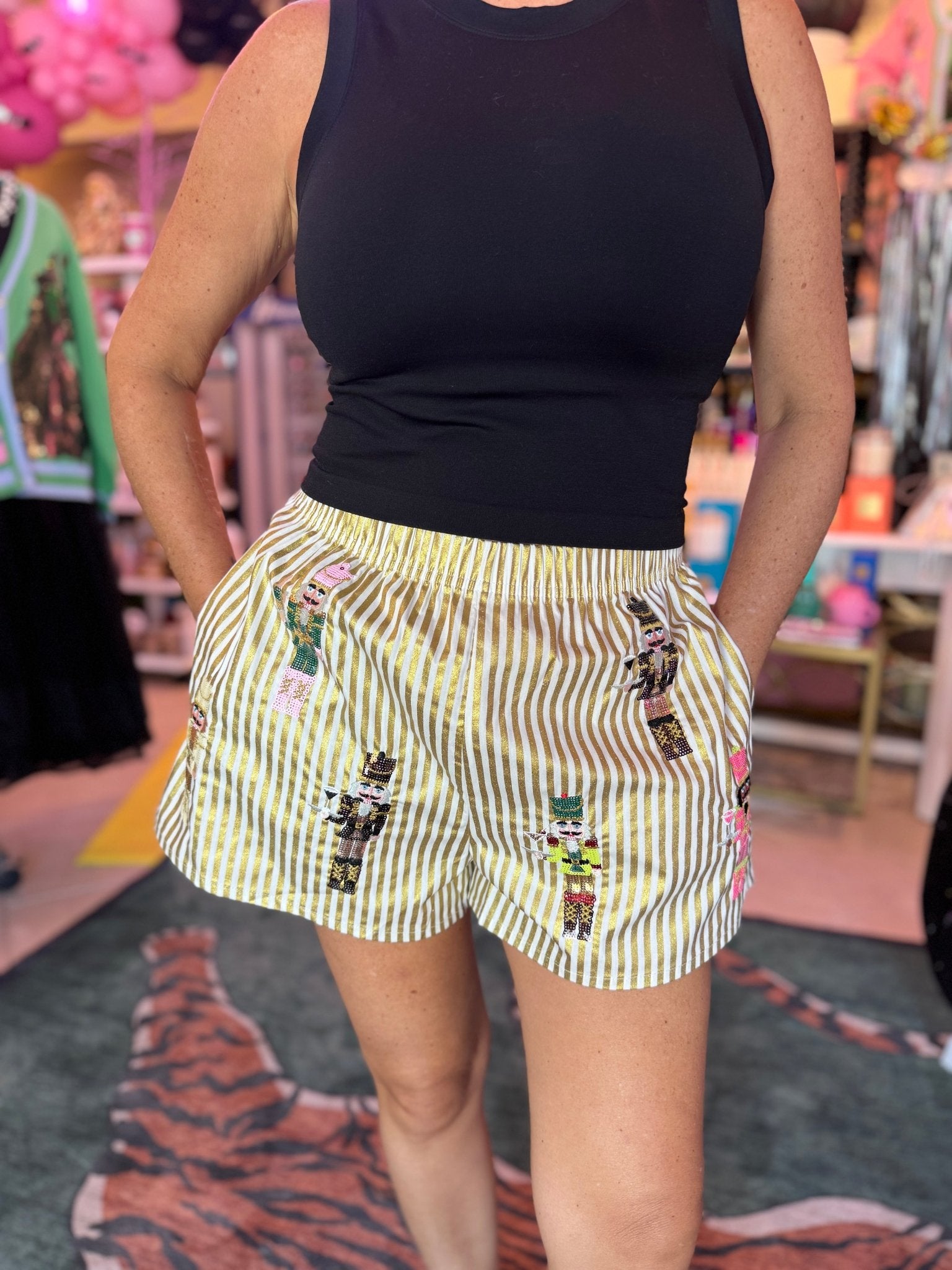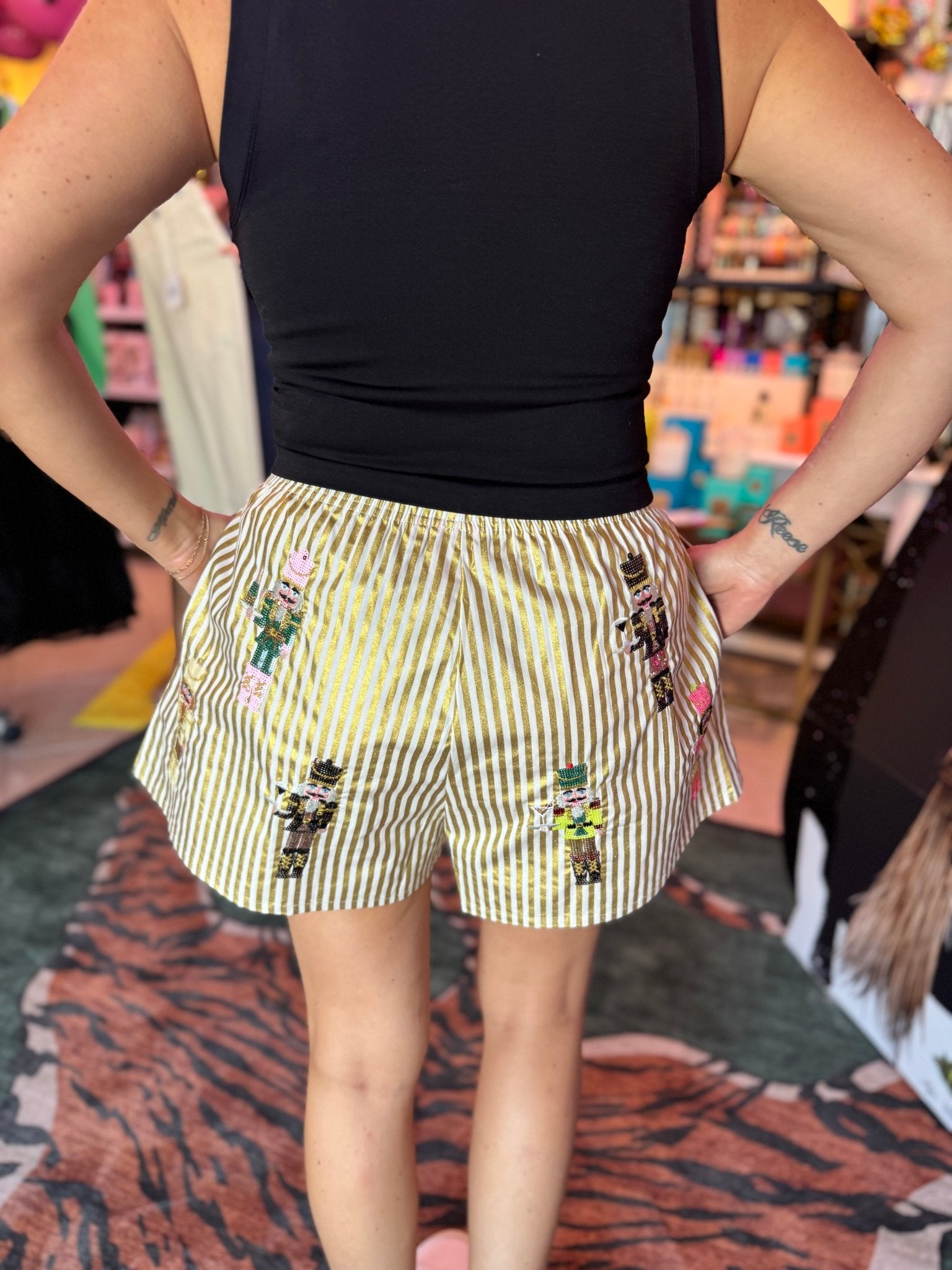 Queen of Sparkles QOS Gold Metallic Stripe Cocktail Serving Nutcracker Short