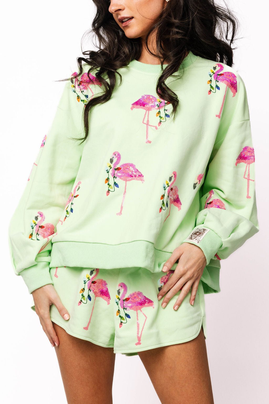Don't forget the matching sweatshirt: Queen of Sparkles • QOS • Mint Flamingo Wearing Christmas Light Necklace Sweatshirt
