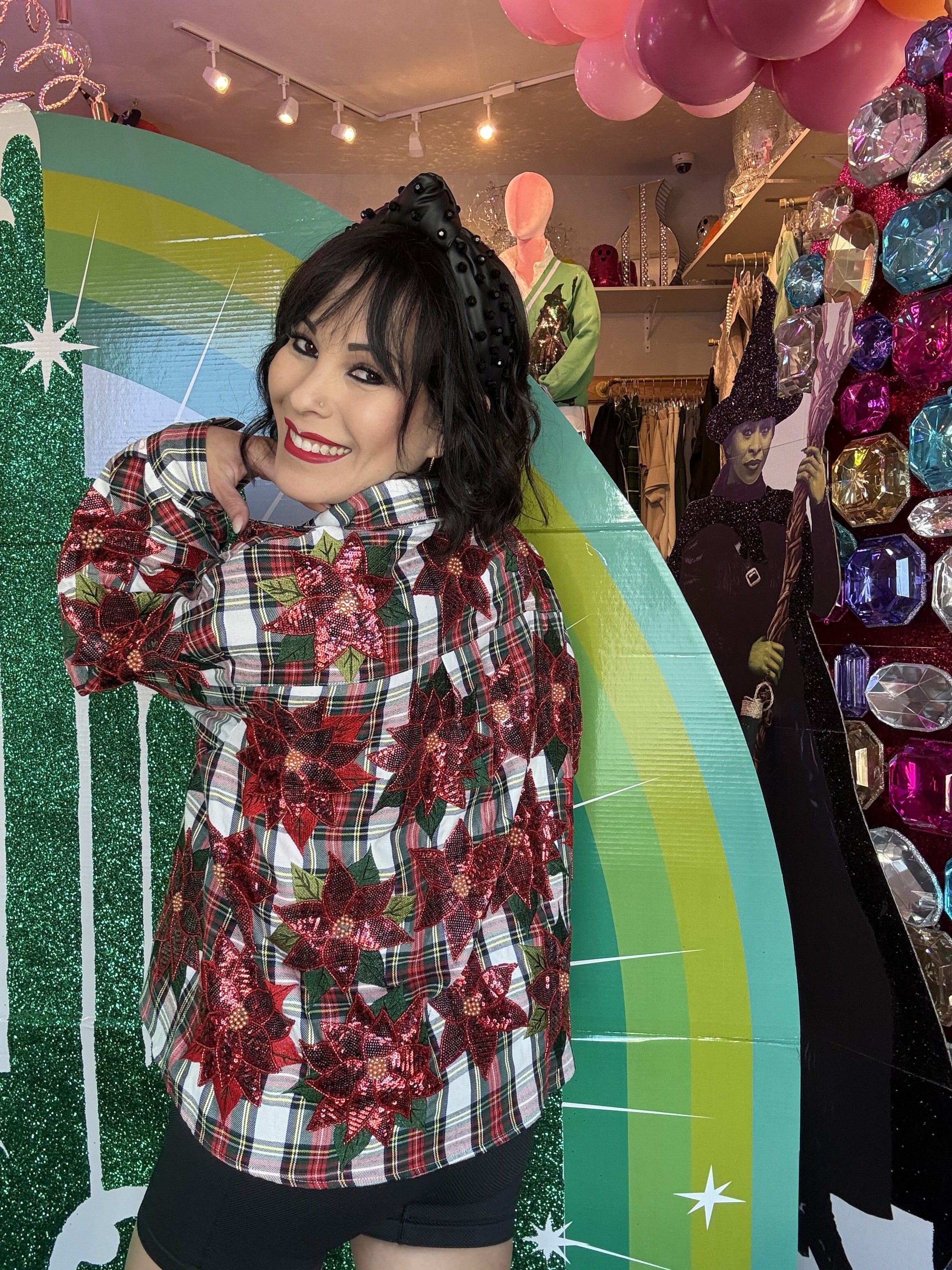 Get ready to jingle all the way in these Queen of Sparkles cotton shorts! Featuring a festive red, green, and white plaid adorned with cheerful poinsettias, they're perfect for spreading holiday cheer with comfort and style. Light, breathable, and playful, these shorts make holiday lounging or parties merrier than ever.