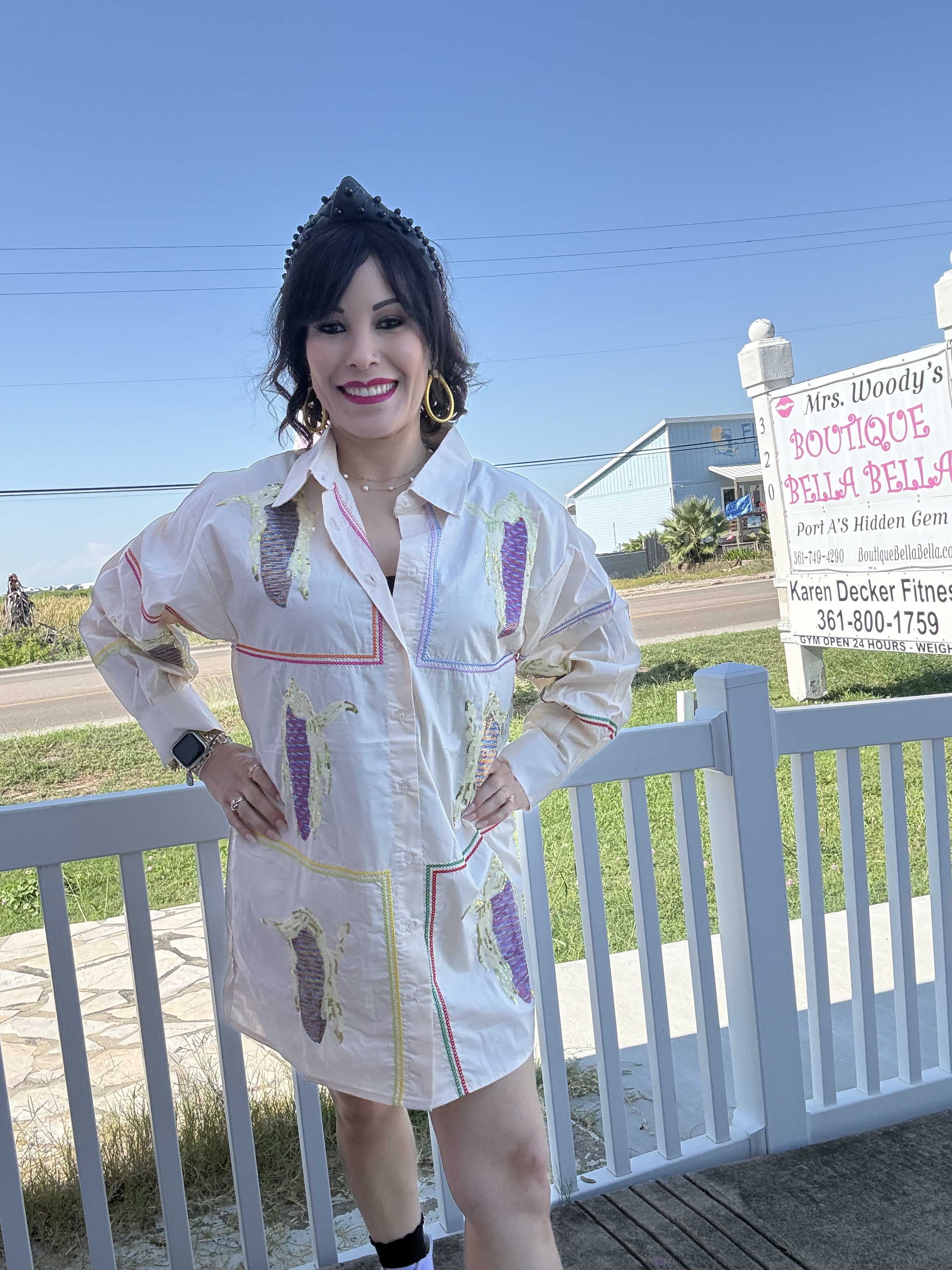 Step into sunny vibes with the Queen of Sparkles QOS Beige Button Up Dress! Crafted from soft multi corn cotton, this playful button-up features a charming collar and breezy fit, perfect for twirling through warm days. Its neutral beige shade pairs effortlessly with your favorite accessories, making it a go-to for fun, effortless style. Model is wearing an XS