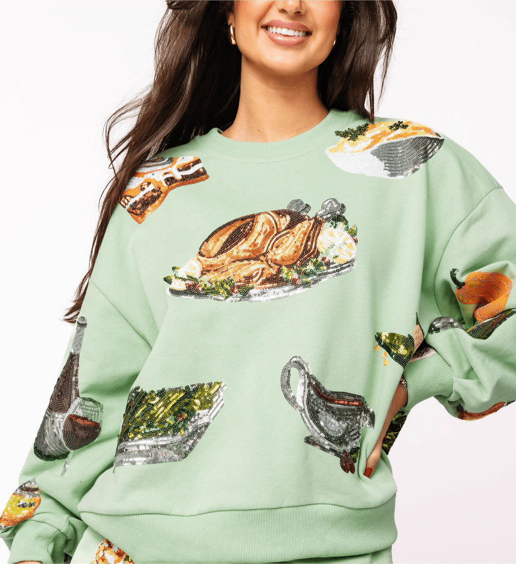 Show off your royal sparkle with the Mint Queen of Turkey Sweatshirt from Queen of Sparkles. Cozy and vibrant in mint, this playful sweatshirt turns heads while keeping you comfy. Perfect for those who love a touch of fun and flair in their casual wear, it’s your new go-to for effortless style and a dash of sparkle.