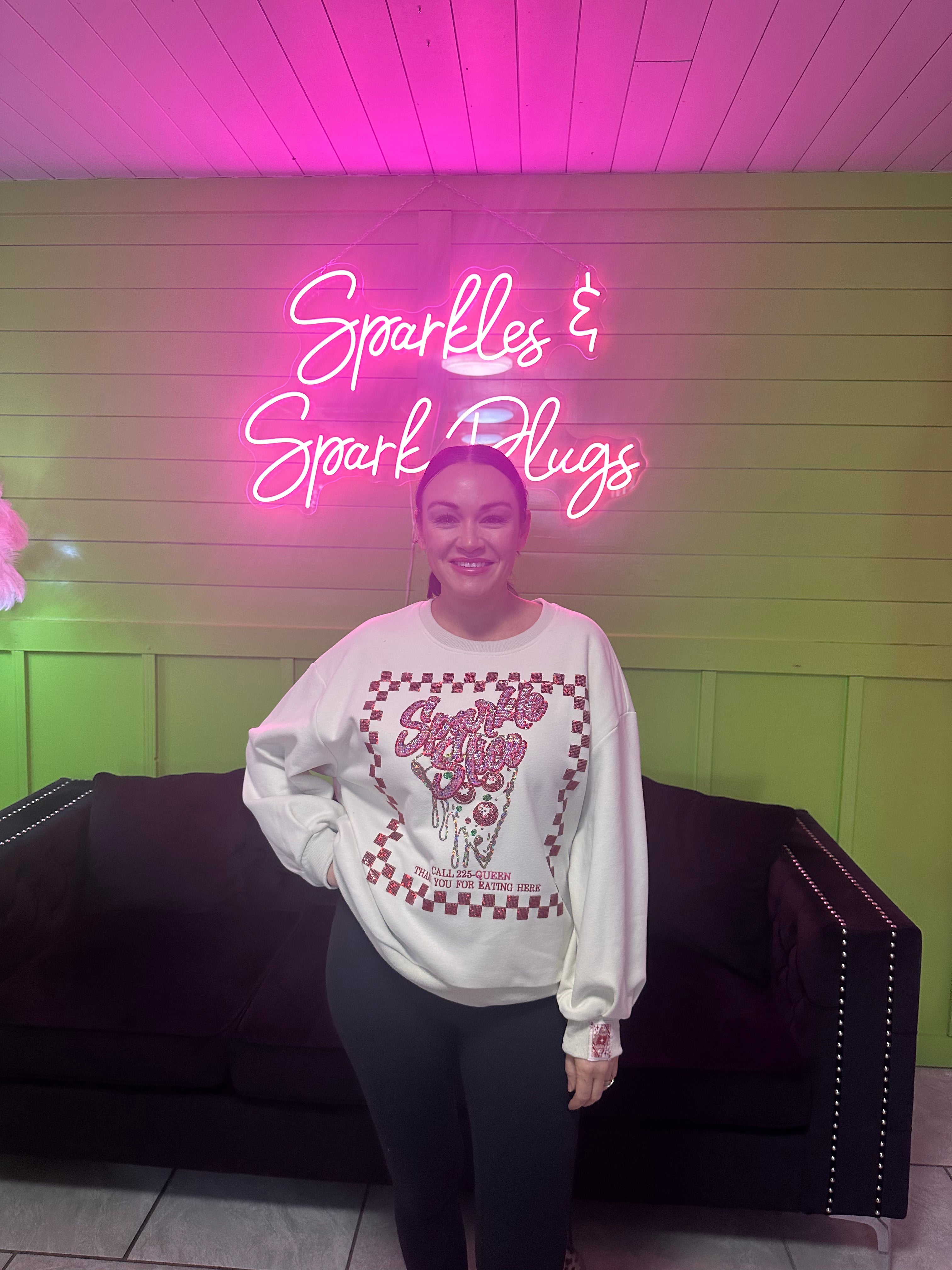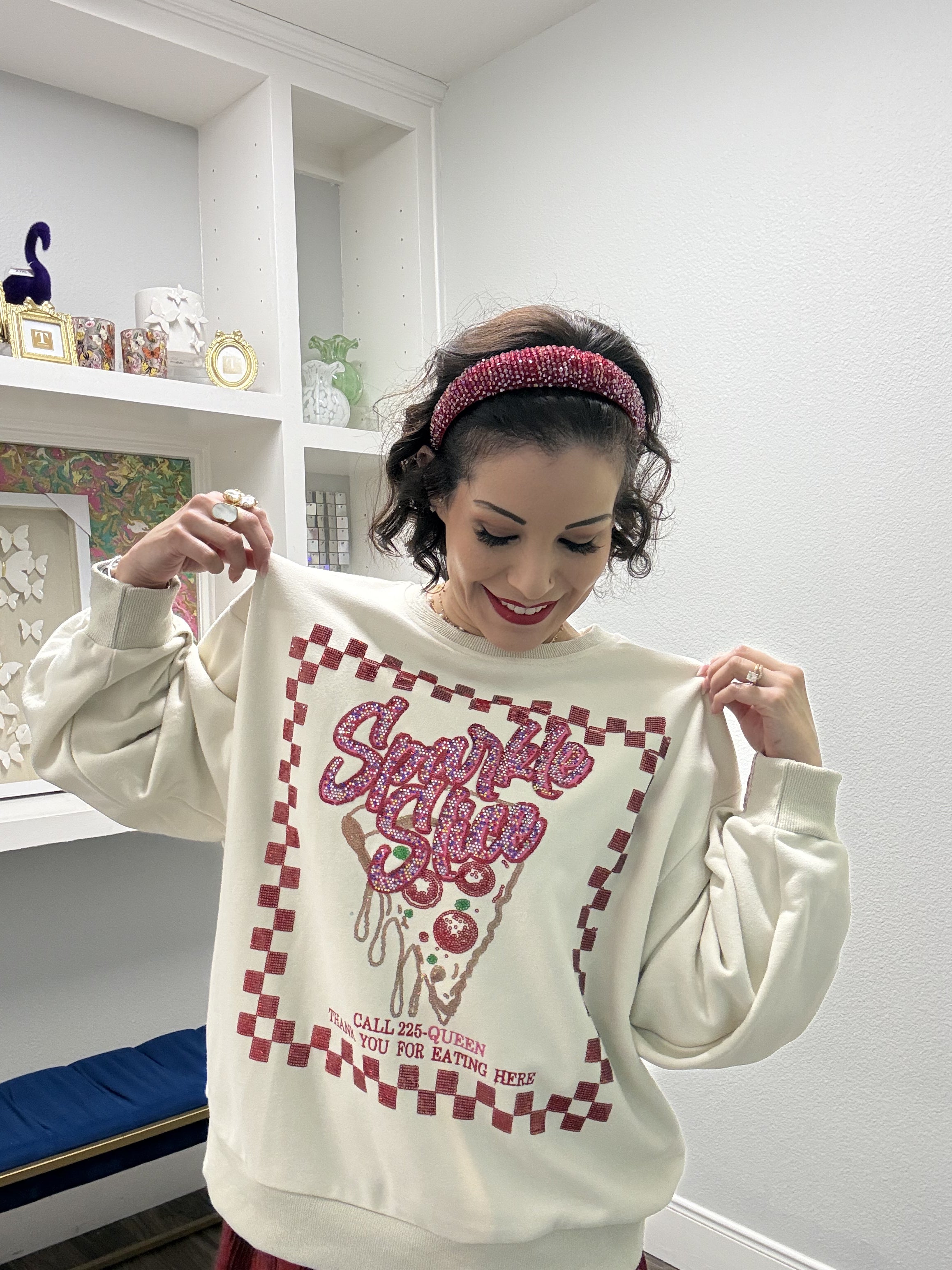 Shine bright in this playful beige and red sweatshirt that's all about fun and flair. The 'Sparkle Slice' design brings just the right amount of sparkle without being over the top—perfect for anyone who loves a little glitter in their everyday style. Cozy, comfortable, and undeniably eye-catching, this piece pairs effortlessly with your favorite jeans or leggings. Whether you're grabbing coffee or heading out for a casual day, you'll feel like royalty in this sparkly essential.