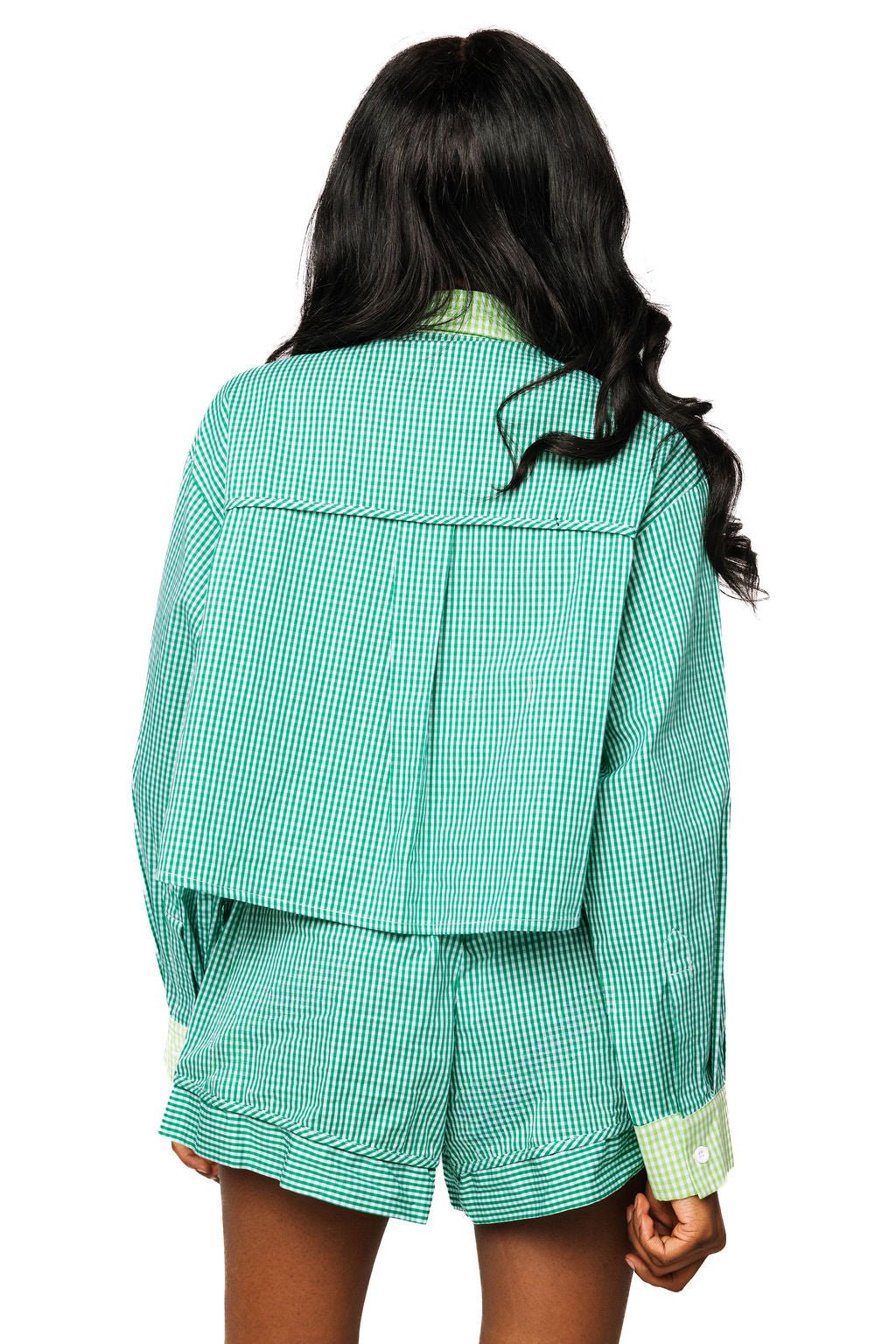 Get ready to turn heads in these adorable green gingham shorts featuring a jeweled shamrock accent and charming ruffled details. The classic gingham pattern pairs perfectly with the sparkling shamrock embellishment, creating a look that's equal parts cute and festive. Ideal for spring outings, holiday celebrations, or anyone who loves a touch of whimsy, these shorts offer comfort without compromising on style. The playful ruffle trim adds movement and personality, making them a standout piece that brings joy to your wardrobe. Perfect for making a lucky impression wherever you go!