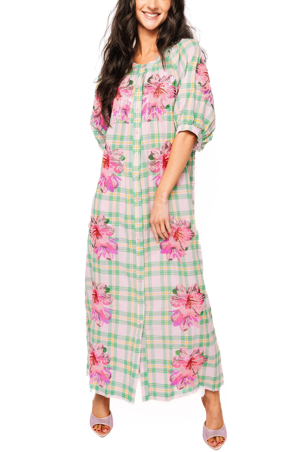 Step into effortless elegance with this charming plaid midi dress from Queen of Sparkles. Featuring a classic button-up front and flattering midi length, this cotton piece transitions seamlessly from brunch to evening plans. The vibrant azalea plaid pattern adds a pop of personality to your wardrobe, while the breathable fabric keeps you comfortable all day long. Perfect for anyone who loves timeless style with a modern twist!