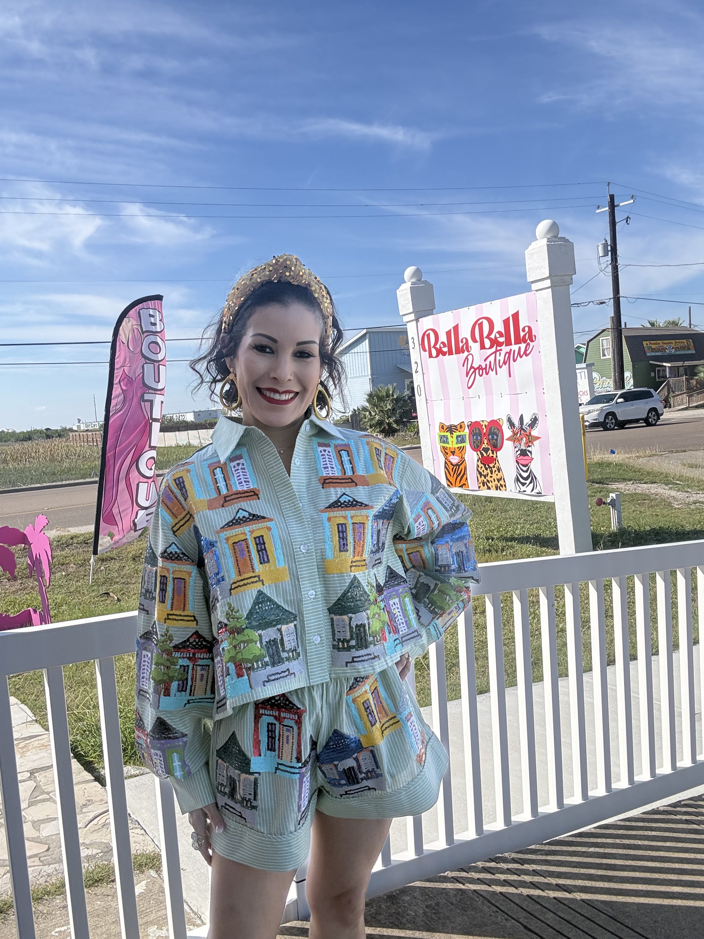 Step into Southern charm with the Queen of Sparkles Pale Green Nola Porches Short! This playful piece captures the essence of New Orleans elegance with its soft pale green hue and sparkly details that catch the light just right. Perfect for those who love a touch of glamour mixed with laid-back style, this short brings personality to any outfit. Whether you're channeling your inner Southern belle or just want to add some shimmer to your wardrobe, this is your go-to piece for turning heads and spreading good vibes. Model is wearing an XS.