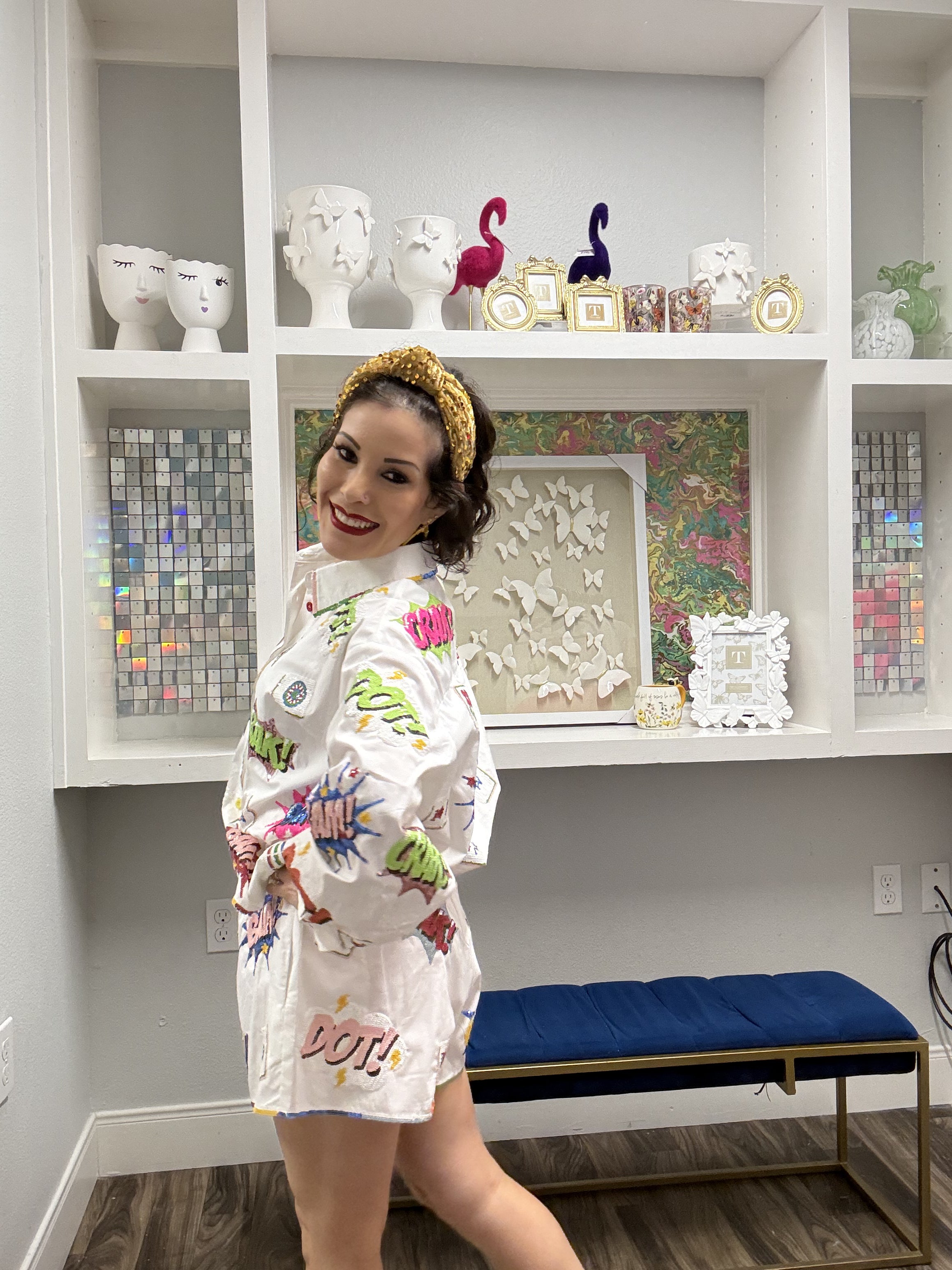 Serve up style with these Queen of Sparkles White Mahjong Icon Rainbow Trim Shorts! Featuring a fun mahjong tile graphic on a crisp white base, these shorts bring bold personality to your casual wardrobe. The vibrant rainbow trim adds a pop of color and playful flair that's impossible to ignore. Perfect for game nights, weekend hangouts, or whenever you want to show off your quirky side. Comfortable, eye-catching, and totally unique—because life's too short for boring shorts! Model is wearing an XS