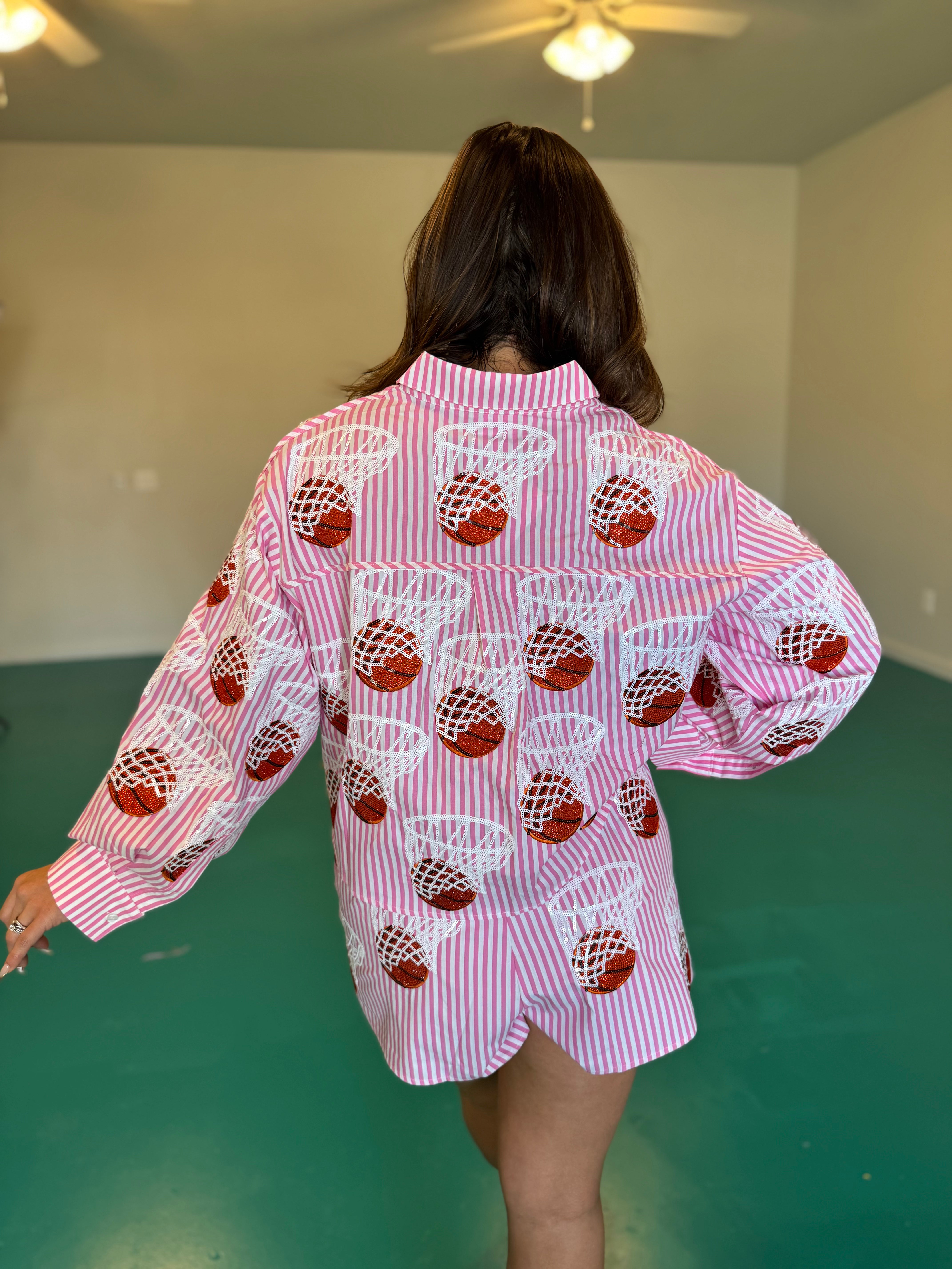 Queen of Sparkles Pink & White Stripe Basketball Hoop Top