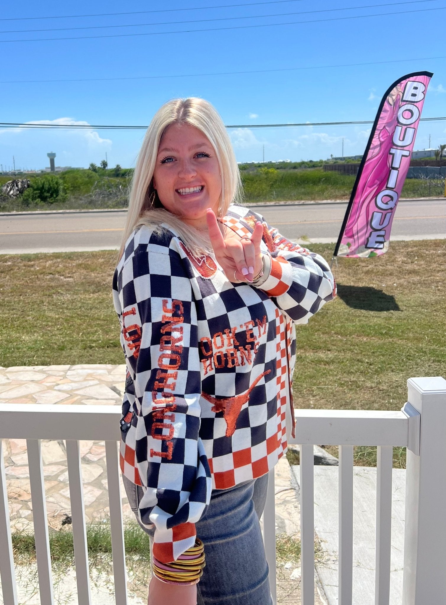 It’s the most perfect Longhorn Cardi! It’s a Texas year so y’all better grab it while we have your size! Horns up!