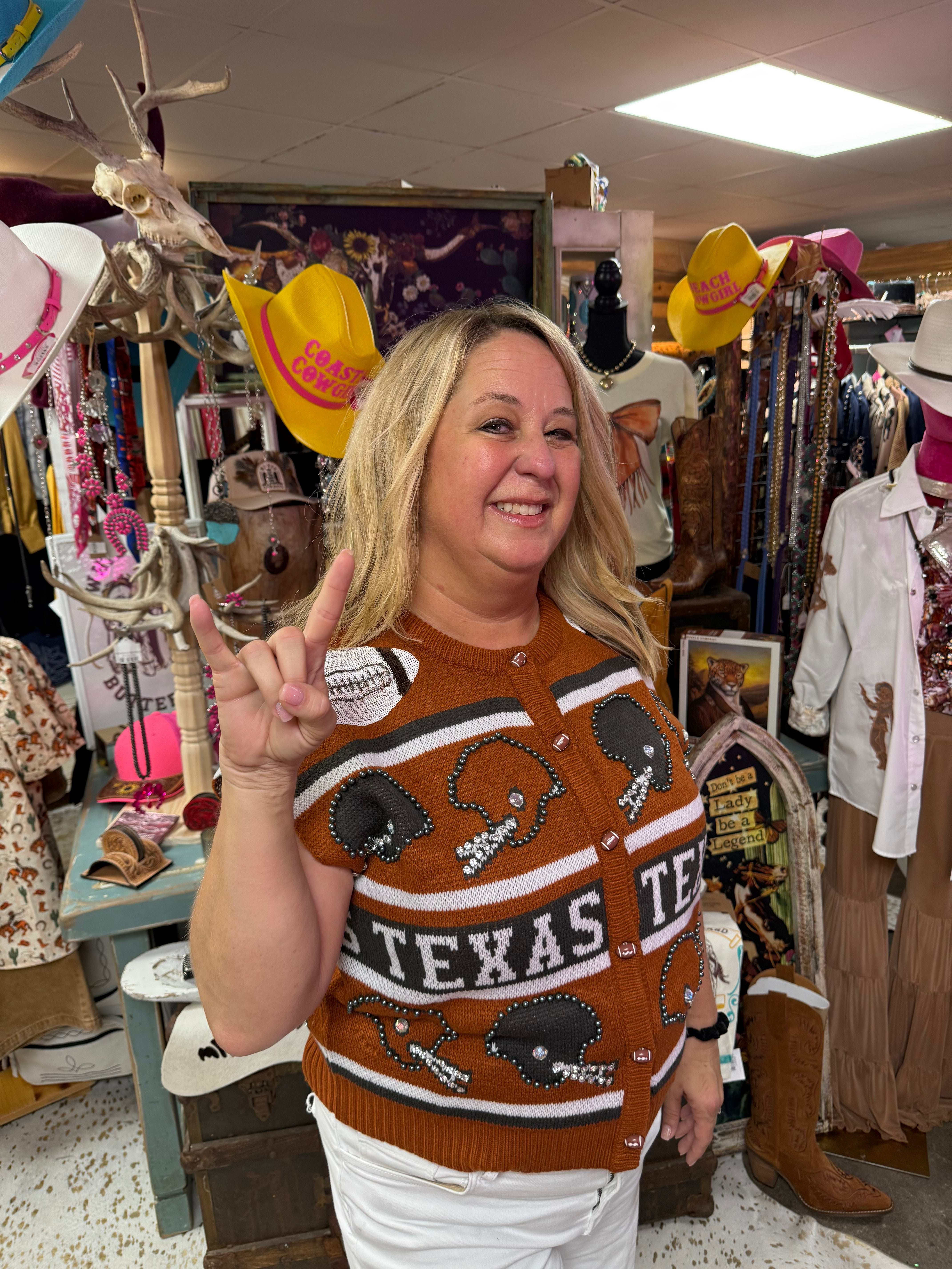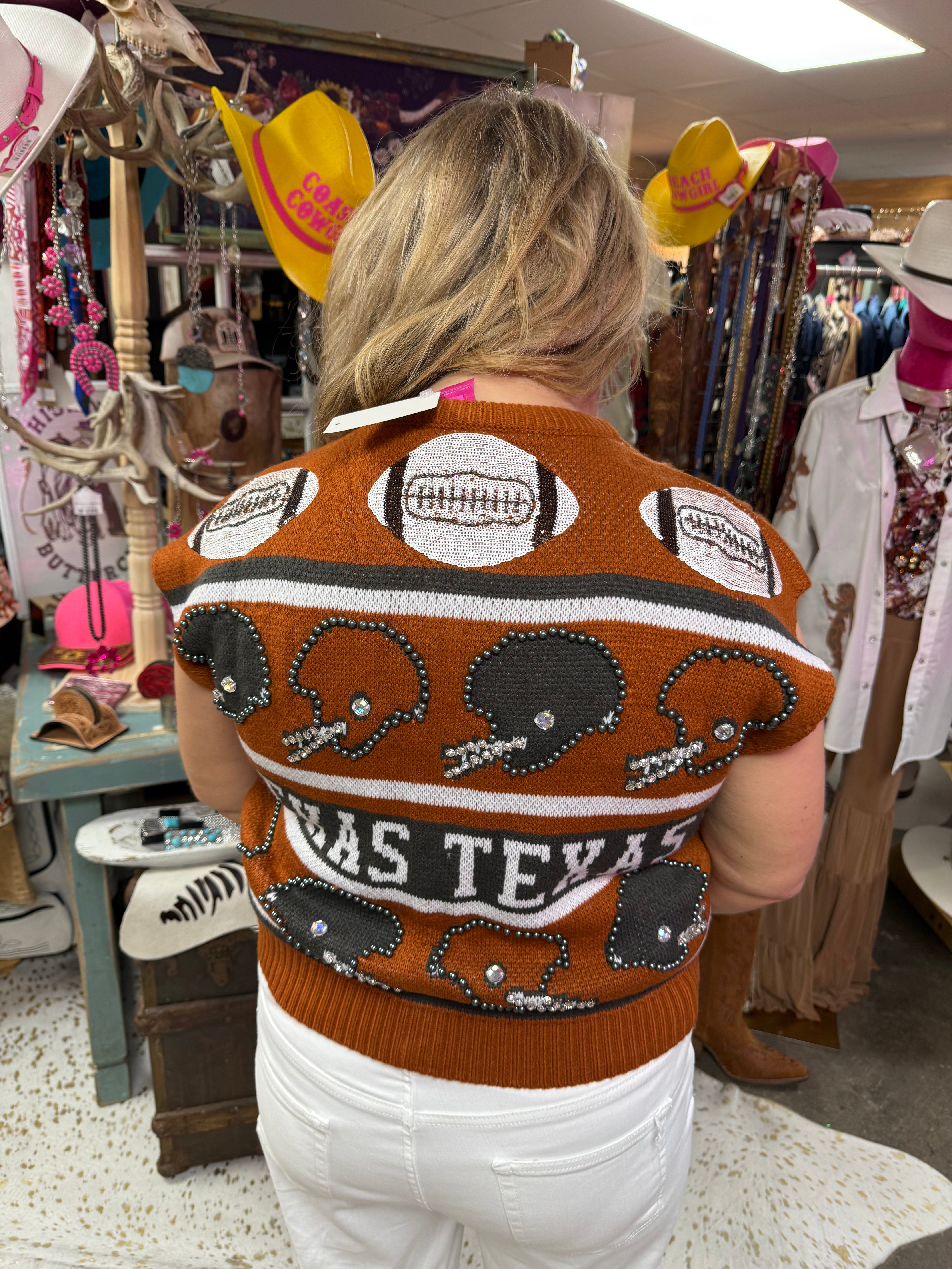 Hook’em Longhorns!! This vest is perfection!!! Grab the new Queen of Sparkles • QOS • Licensed Texas Vintage Football Helmet Stripe Vest!